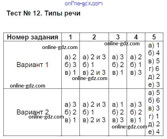 Готовые домашние задания по Русскому языку за 5 класс Тематические тесты Каськова УМК 2016 - Тесты 12