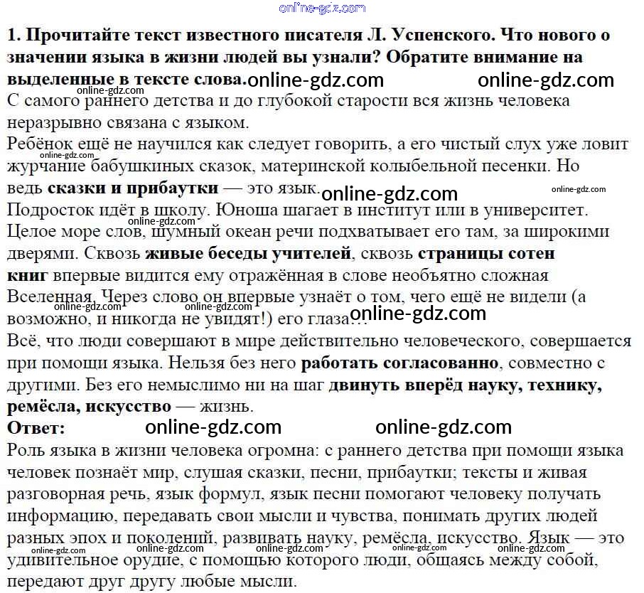 Готовые домашние задания по Русскому языку за 5 класс Учебник Баранов, Ладыженская 2016 - Часть 1. Упражнения 1
