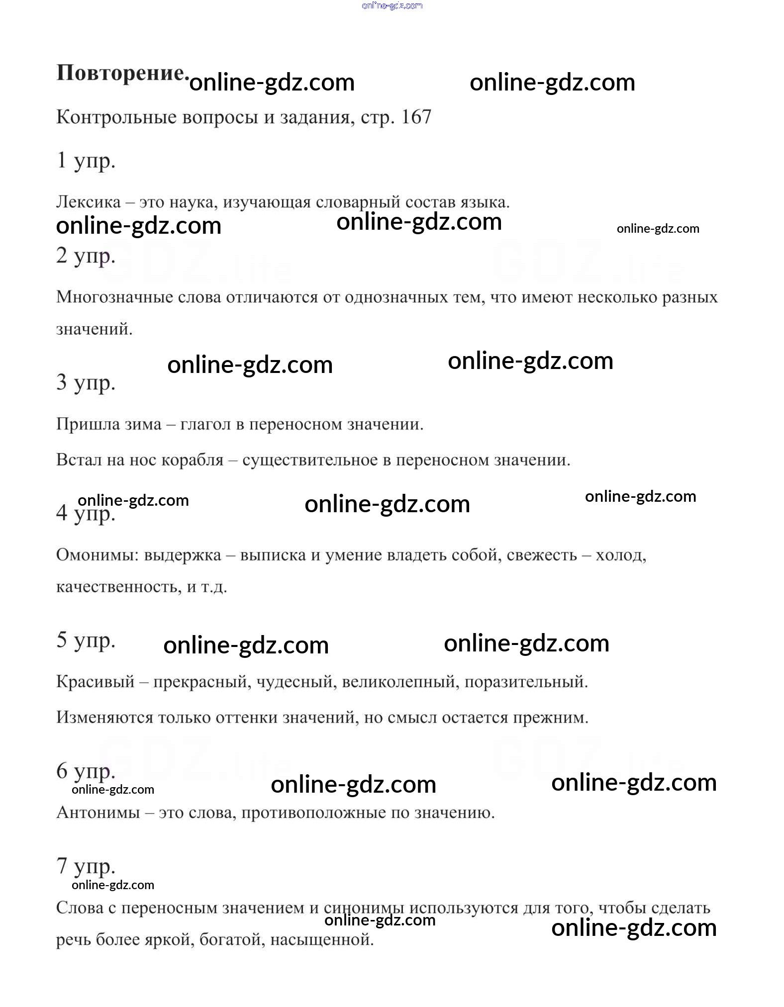 часть 1. упражнение / повторение. контрольный вопрос и задание / стр.167 (190)