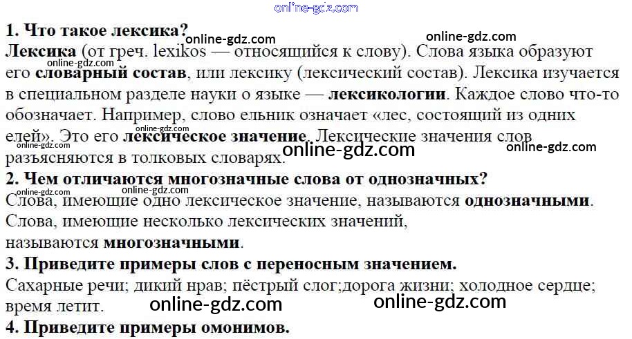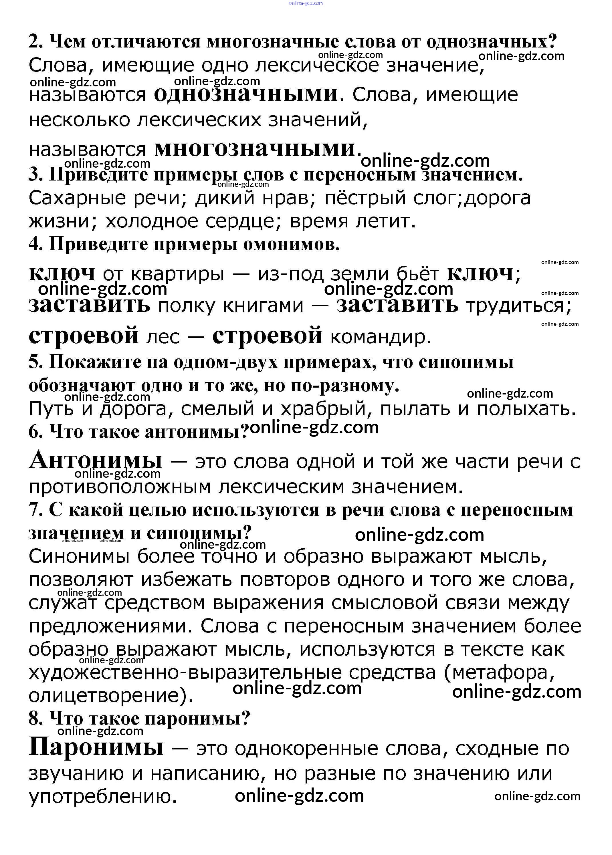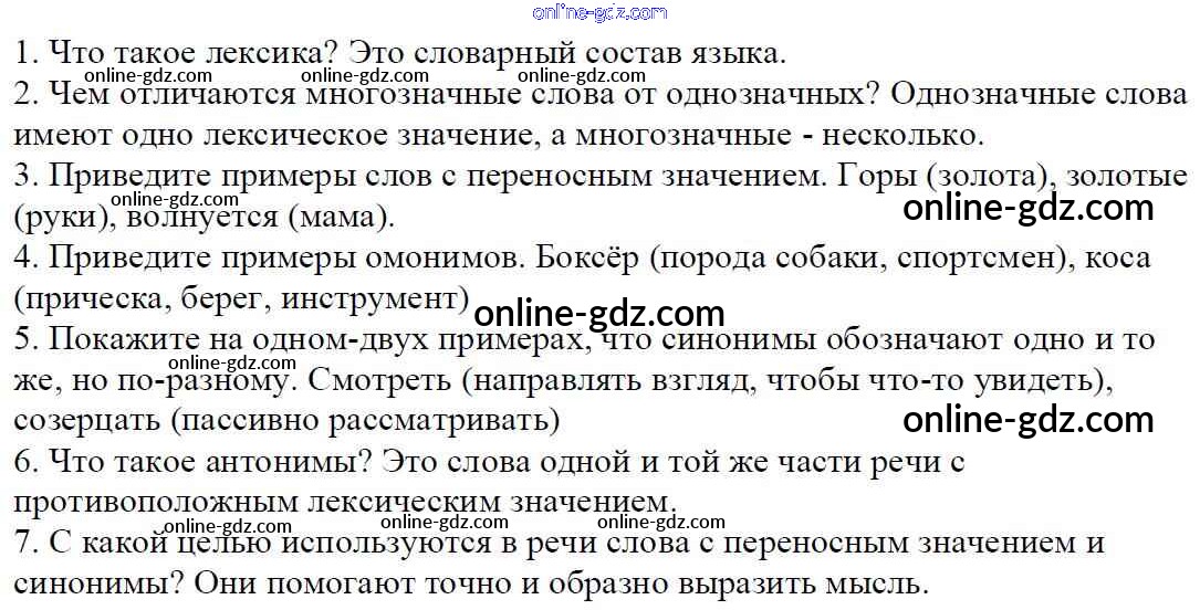 Готовые домашние задания по Русскому языку за 5 класс Учебник Баранов, Ладыженская 2016 - Повторение. Контрольные вопросы и задания Часть 1. Упражнения стр.167 (190)