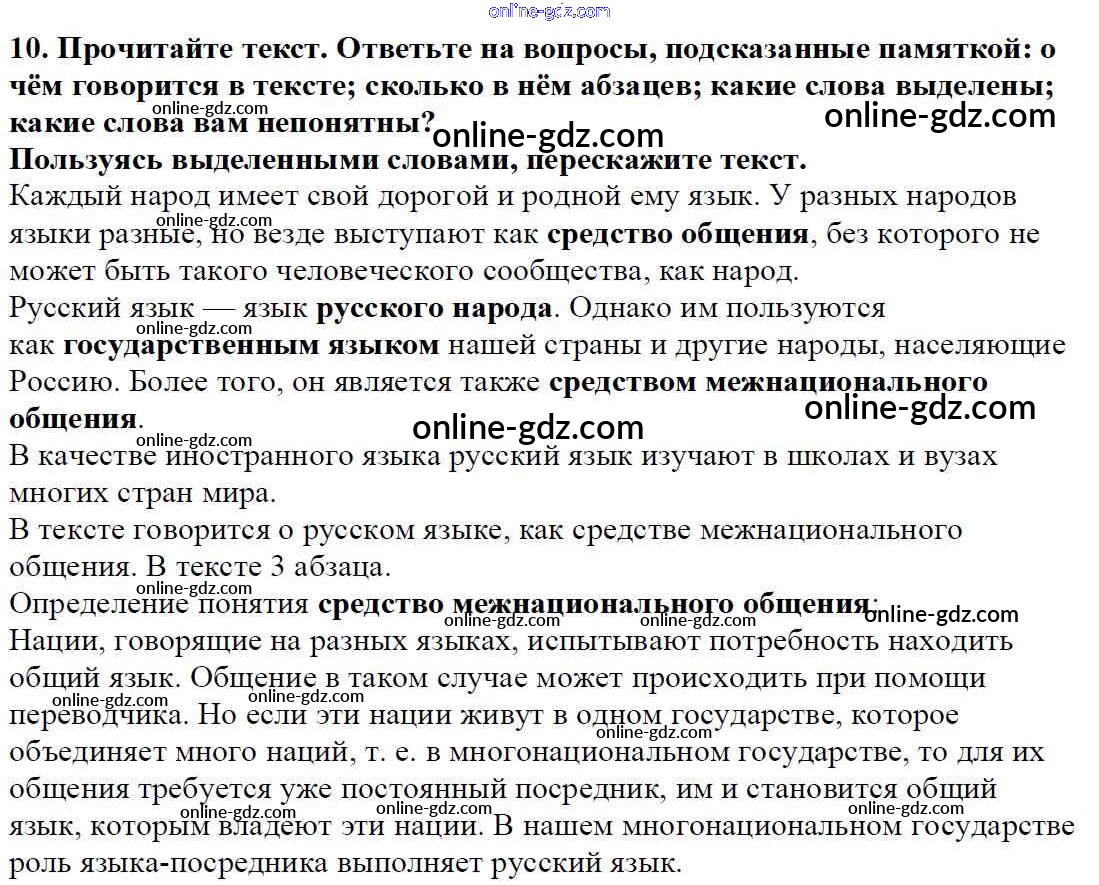 Готовые домашние задания по Русскому языку за 5 класс Учебник Баранов, Ладыженская 2016 - Часть 1. Упражнения 10