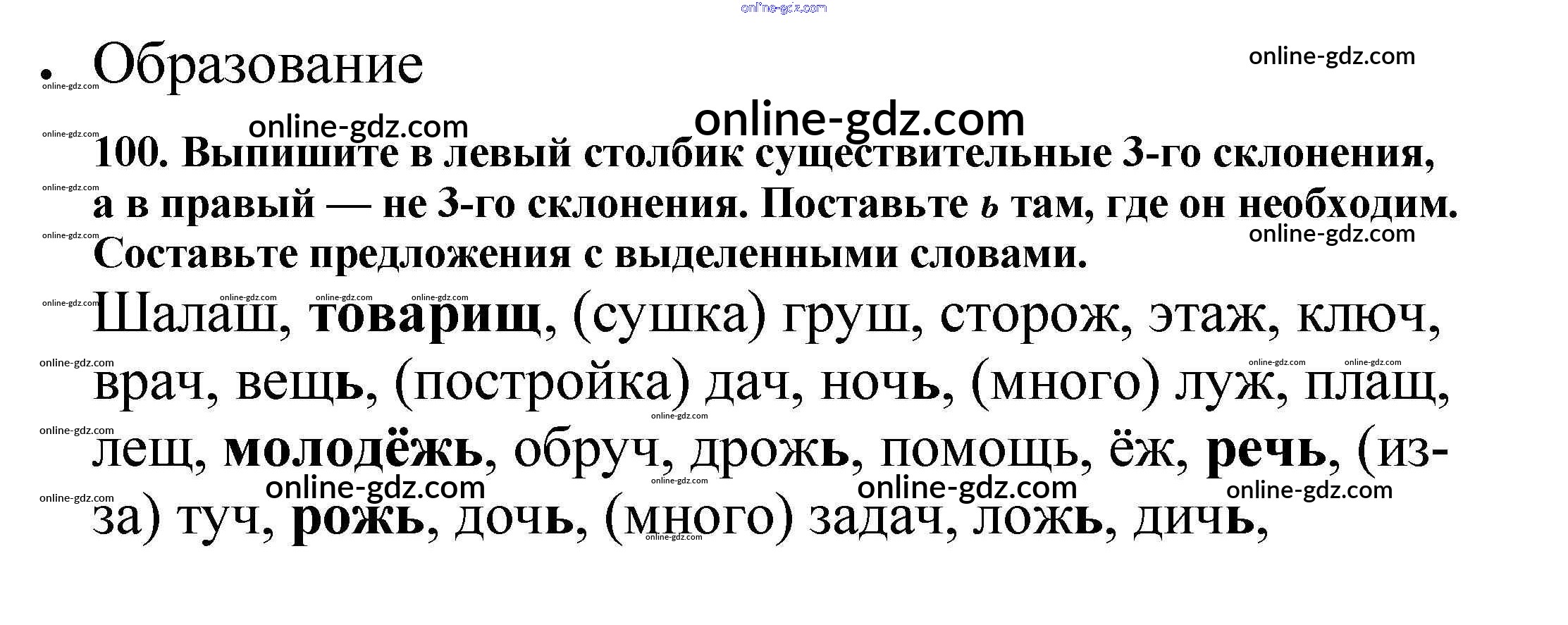 Готовые домашние задания по Русскому языку за 5 класс Учебник Баранов, Ладыженская 2016 - Часть 1. Упражнения 100