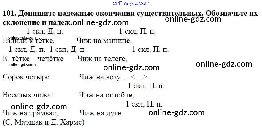 Готовые домашние задания по Русскому языку за 5 класс Учебник Баранов, Ладыженская 2016 - Часть 1. Упражнения 101