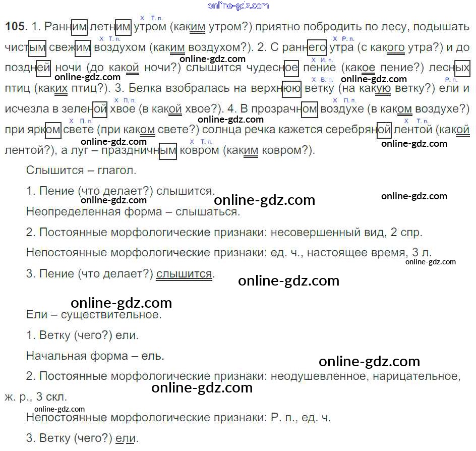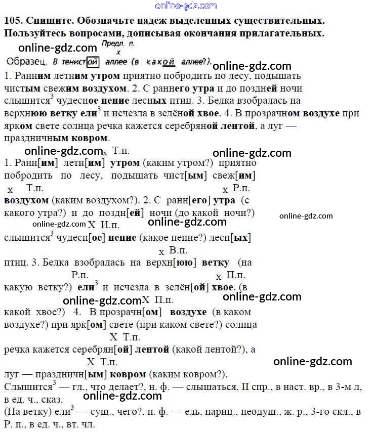 Готовые домашние задания по Русскому языку за 5 класс Учебник Баранов, Ладыженская 2016 - Часть 1. Упражнения 105