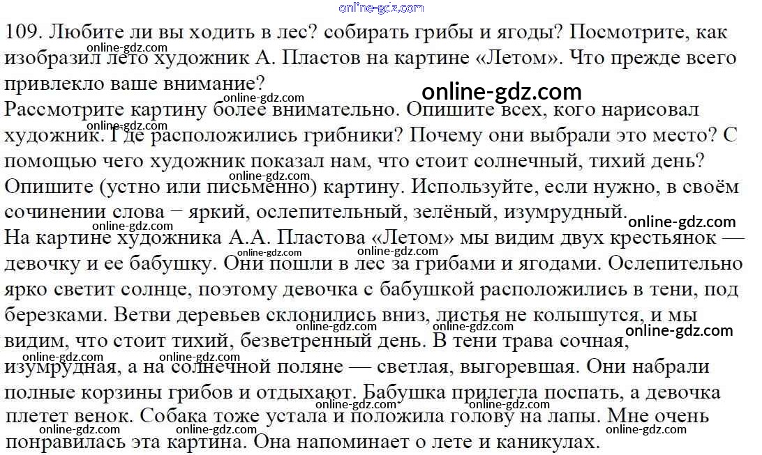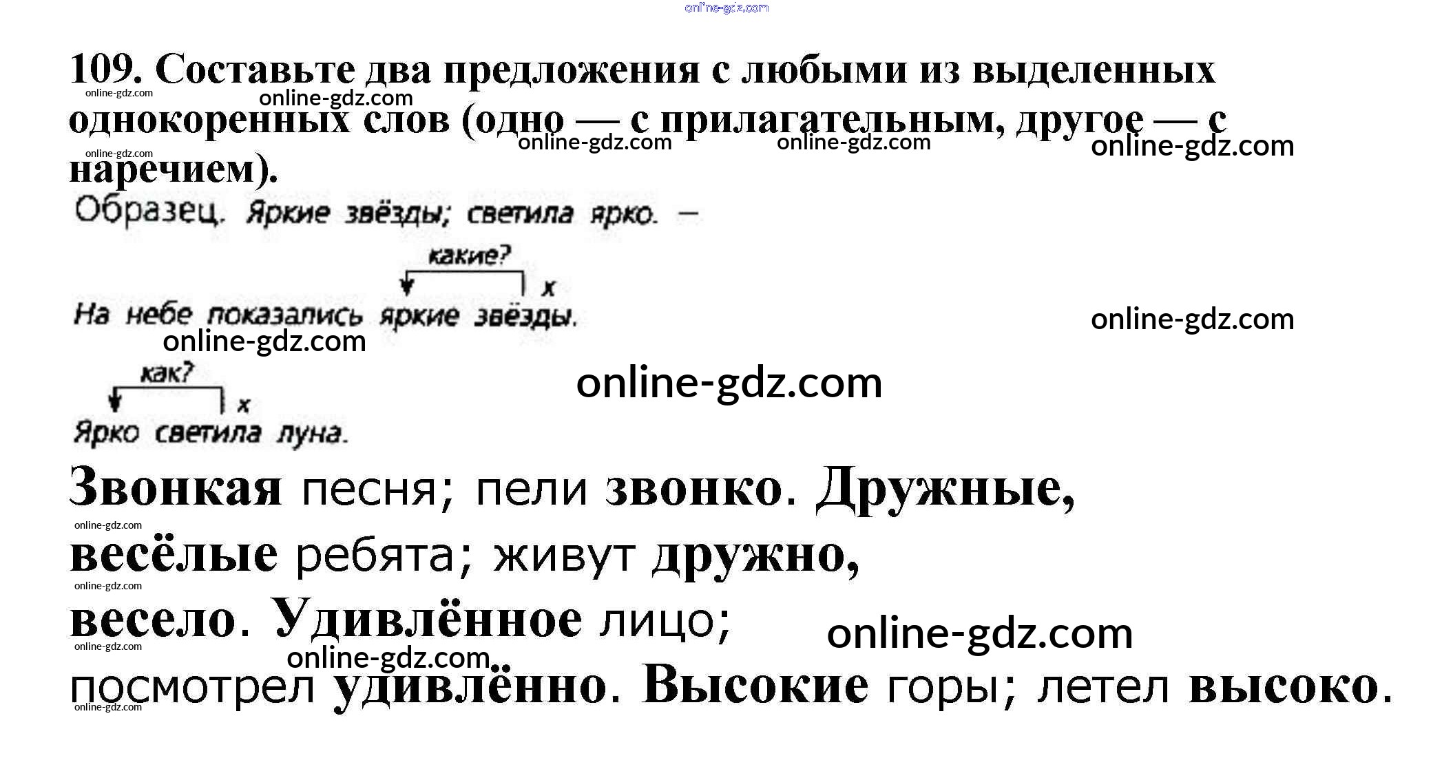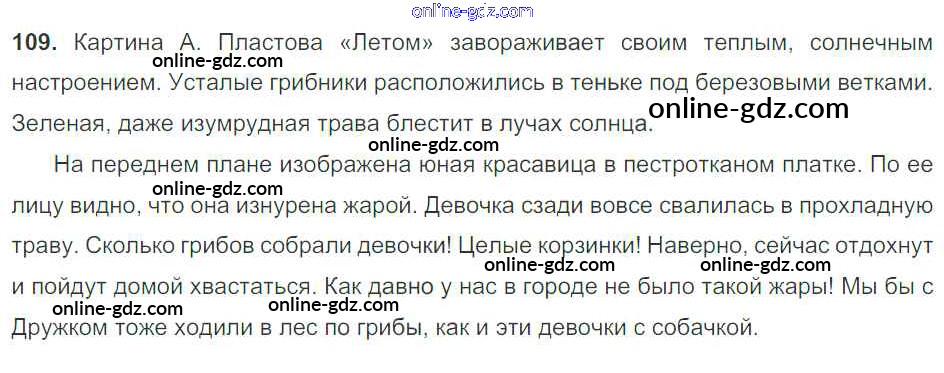 Готовые домашние задания по Русскому языку за 5 класс Учебник Баранов, Ладыженская 2016 - Часть 1. Упражнения 109