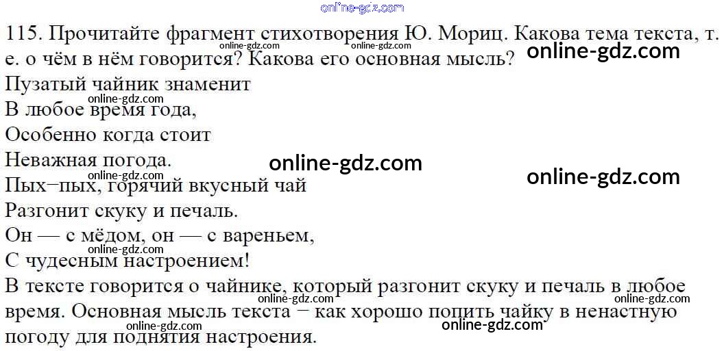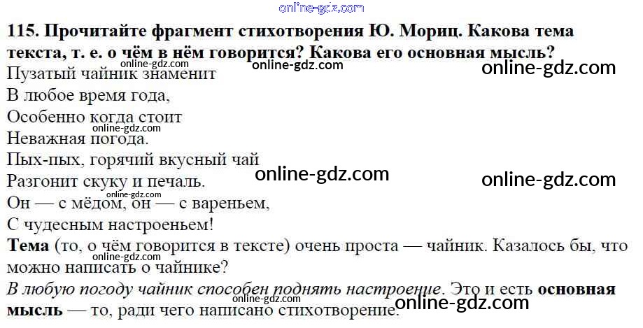 Готовые домашние задания по Русскому языку за 5 класс Учебник Баранов, Ладыженская 2016 - Часть 1. Упражнения 115