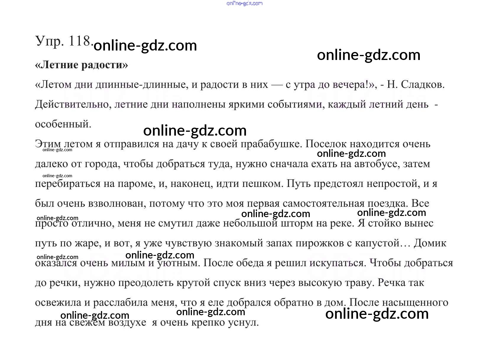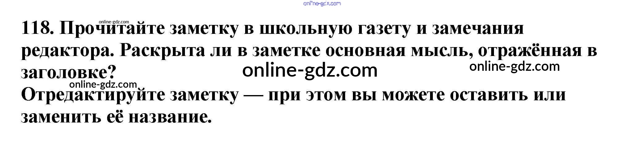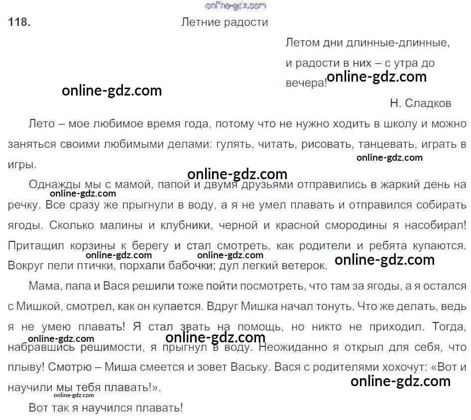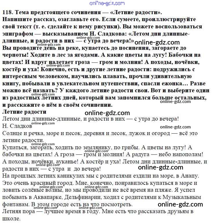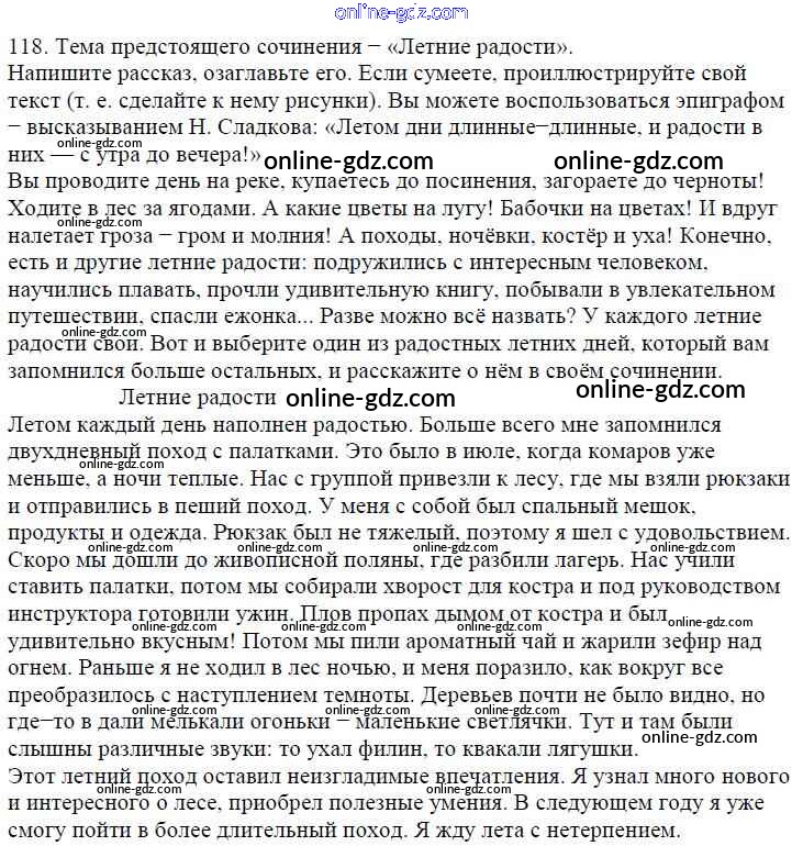 Готовые домашние задания по Русскому языку за 5 класс Учебник Баранов, Ладыженская 2016 - Часть 1. Упражнения 118