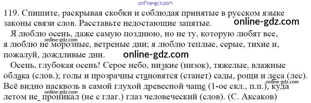 Готовые домашние задания по Русскому языку за 5 класс Учебник Баранов, Ладыженская 2016 - Часть 1. Упражнения 119
