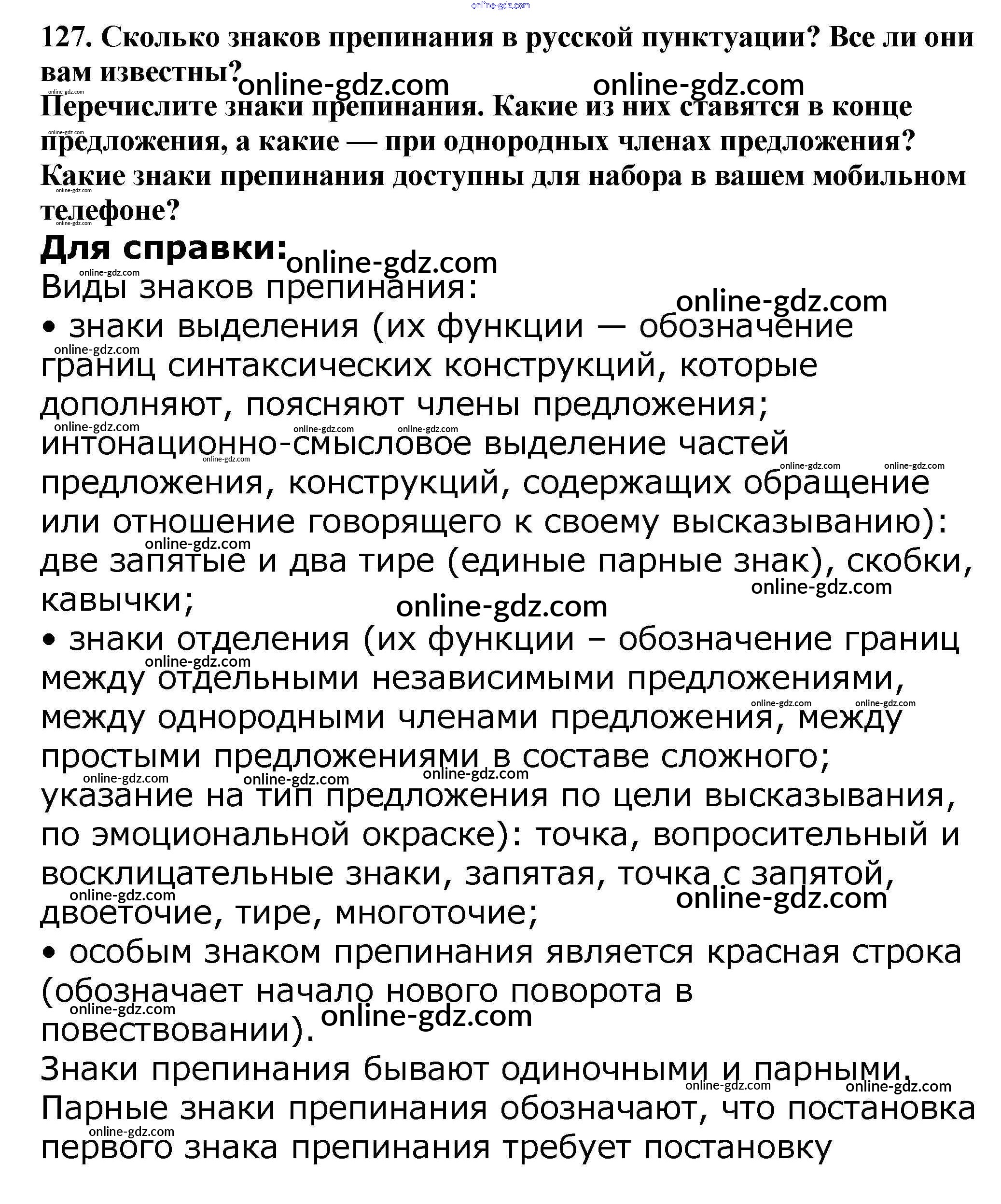 Готовые домашние задания по Русскому языку за 5 класс Учебник Баранов, Ладыженская 2016 - Часть 1. Упражнения 127
