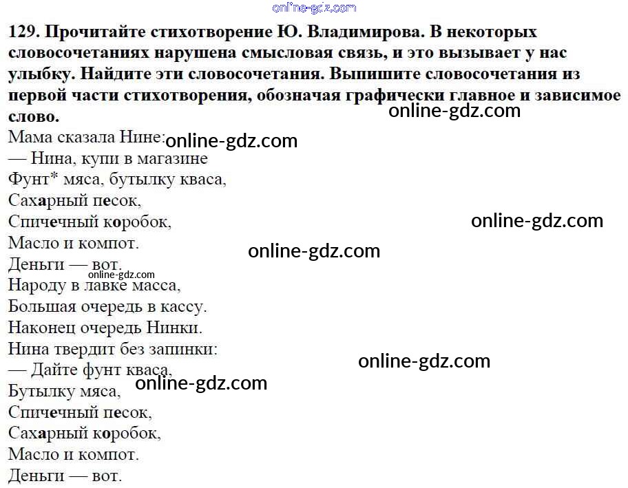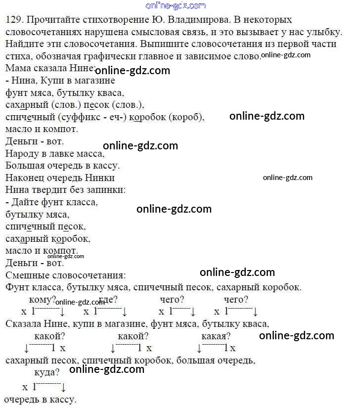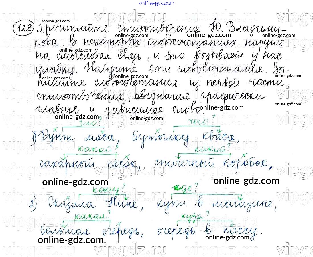 Готовые домашние задания по Русскому языку за 5 класс Учебник Баранов, Ладыженская 2016 - Часть 1. Упражнения 129