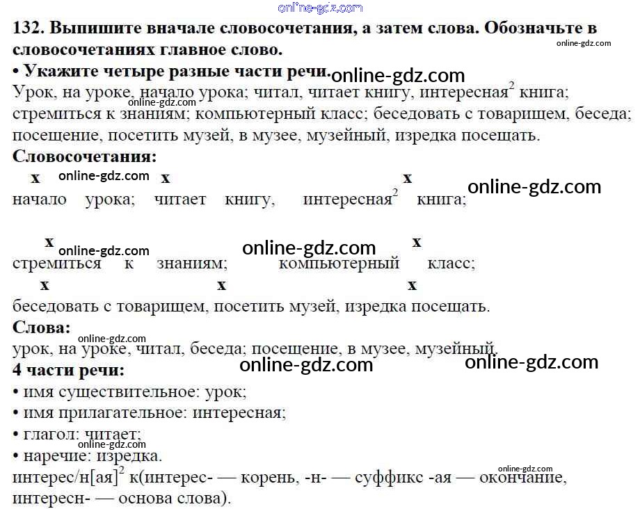 Готовые домашние задания по Русскому языку за 5 класс Учебник Баранов, Ладыженская 2016 - Часть 1. Упражнения 132