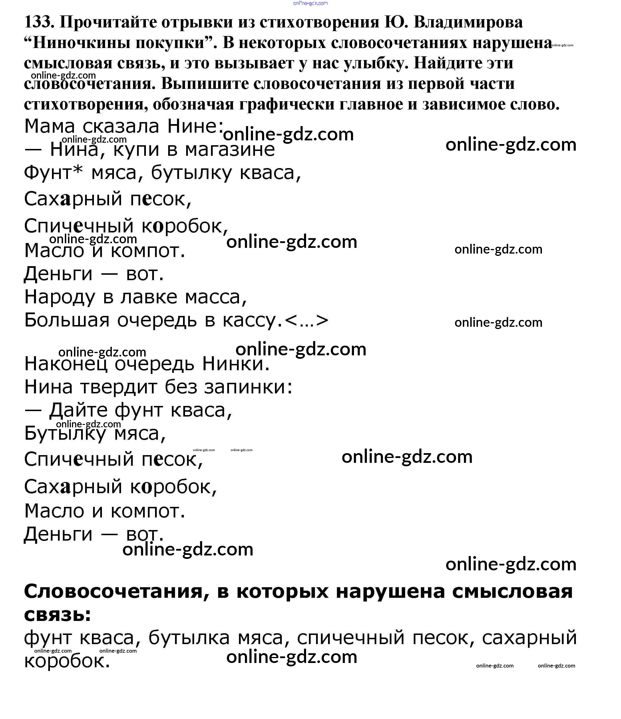 Готовые домашние задания по Русскому языку за 5 класс Учебник Баранов, Ладыженская 2016 - Часть 1. Упражнения 133