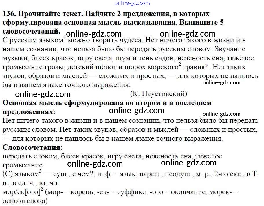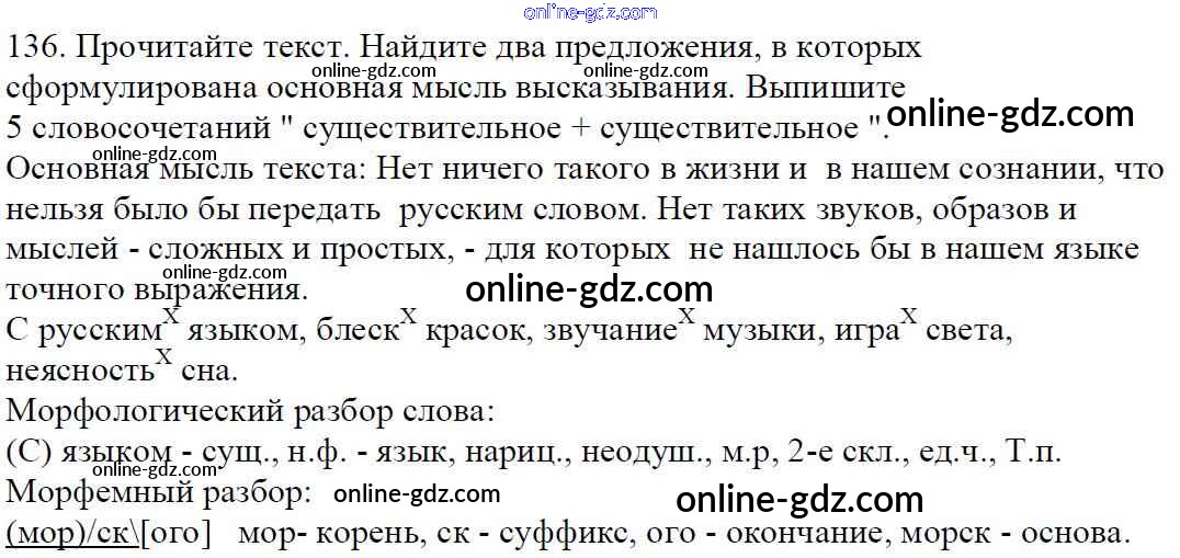 Готовые домашние задания по Русскому языку за 5 класс Учебник Баранов, Ладыженская 2016 - Часть 1. Упражнения 136