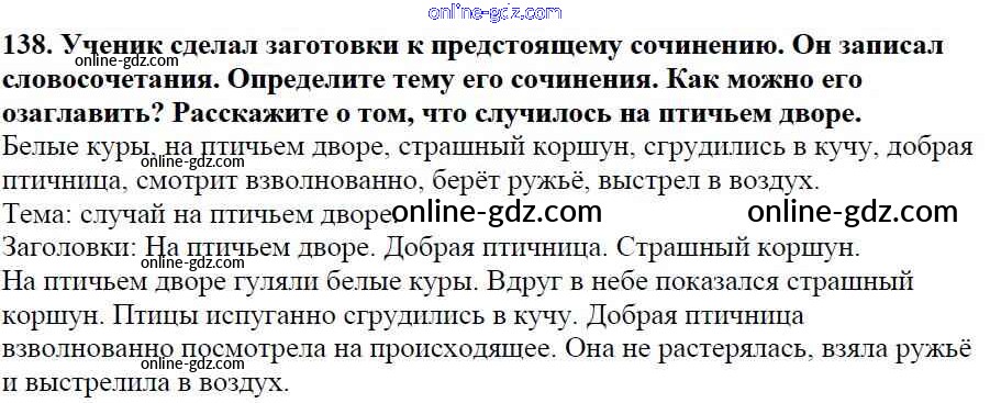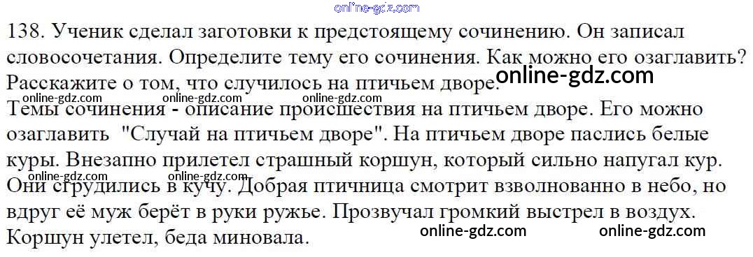 Готовые домашние задания по Русскому языку за 5 класс Учебник Баранов, Ладыженская 2016 - Часть 1. Упражнения 138