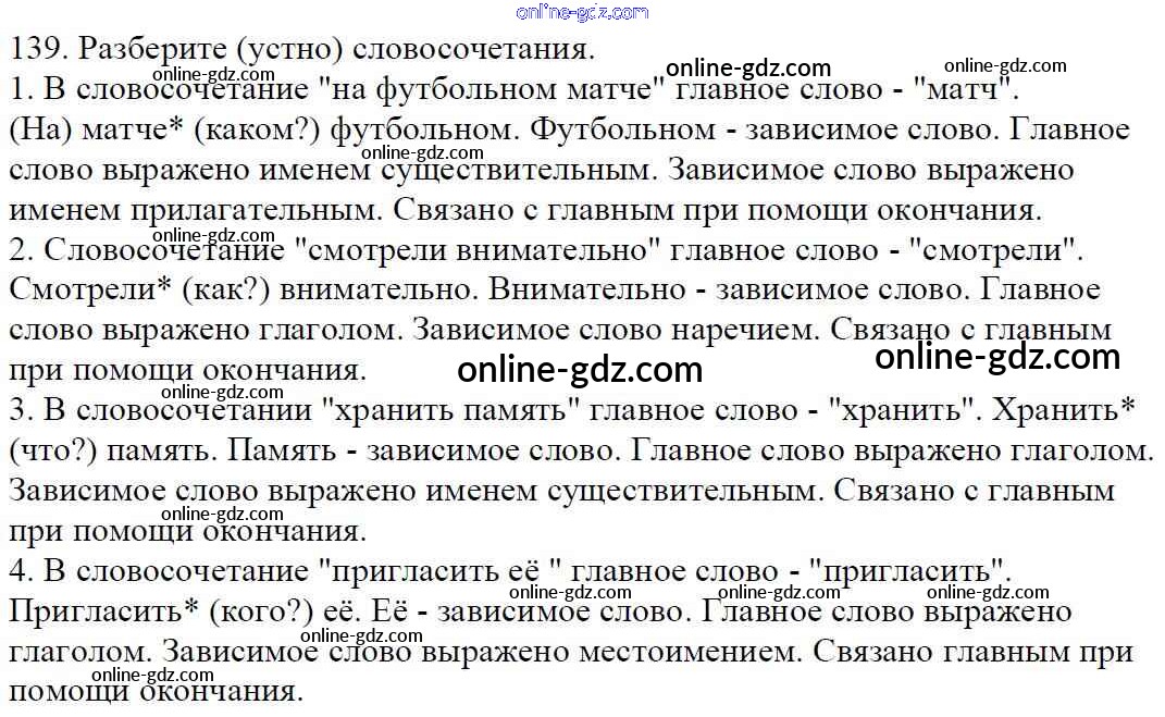 Готовые домашние задания по Русскому языку за 5 класс Учебник Баранов, Ладыженская 2016 - Часть 1. Упражнения 139