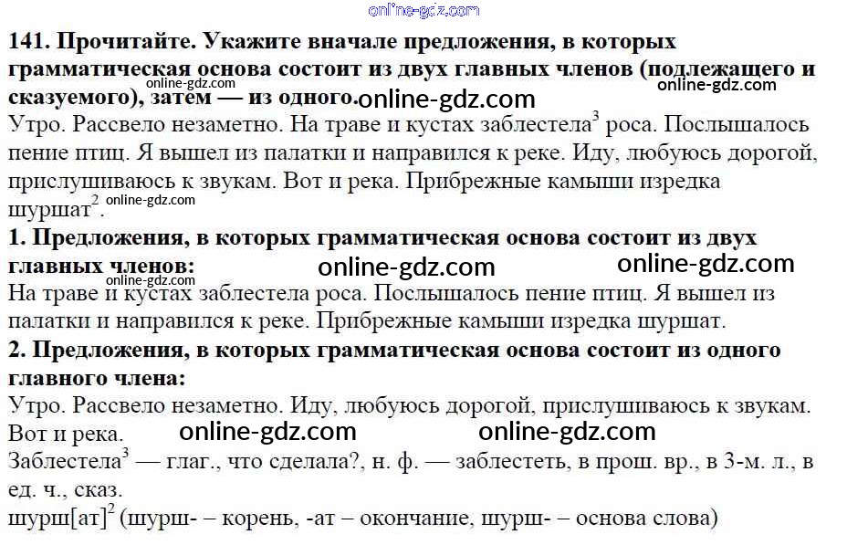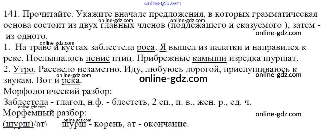 Готовые домашние задания по Русскому языку за 5 класс Учебник Баранов, Ладыженская 2016 - Часть 1. Упражнения 141