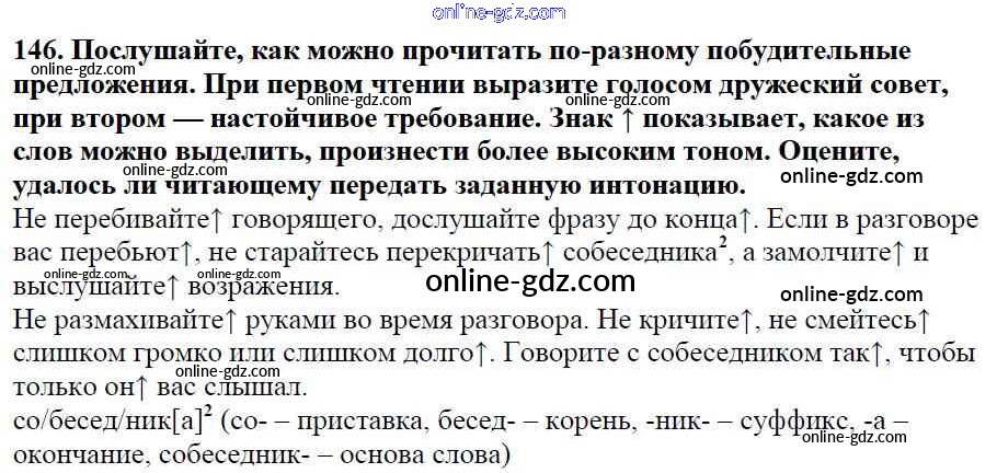 Готовые домашние задания по Русскому языку за 5 класс Учебник Баранов, Ладыженская 2016 - Часть 1. Упражнения 146