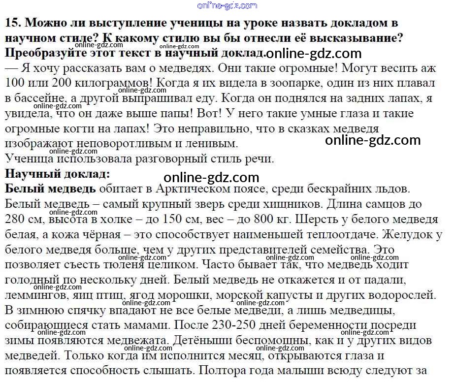 Готовые домашние задания по Русскому языку за 5 класс Учебник Баранов, Ладыженская 2016 - Часть 1. Упражнения 15