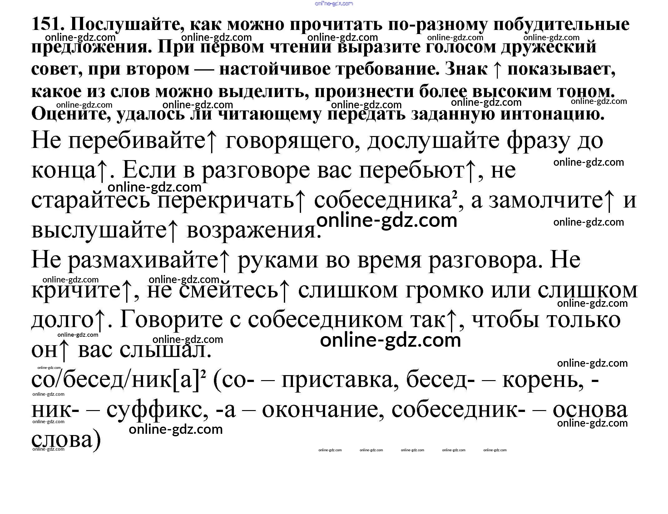 Готовые домашние задания по Русскому языку за 5 класс Учебник Баранов, Ладыженская 2016 - Часть 1. Упражнения 151