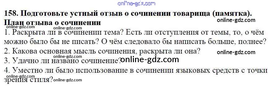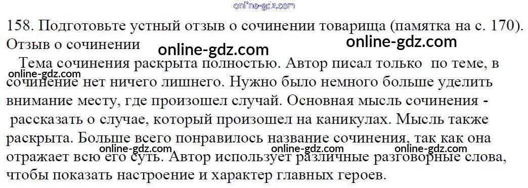 Готовые домашние задания по Русскому языку за 5 класс Учебник Баранов, Ладыженская 2016 - Часть 1. Упражнения 158