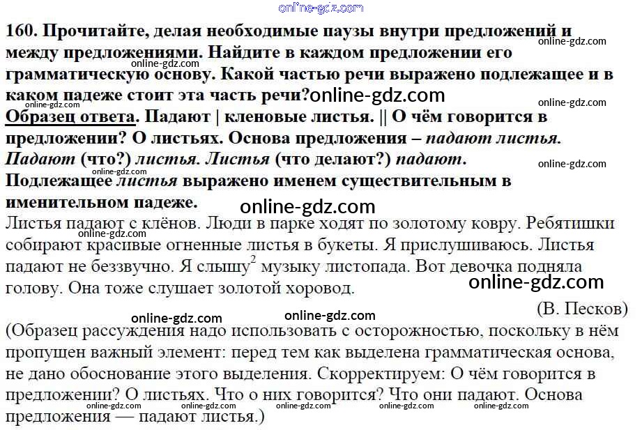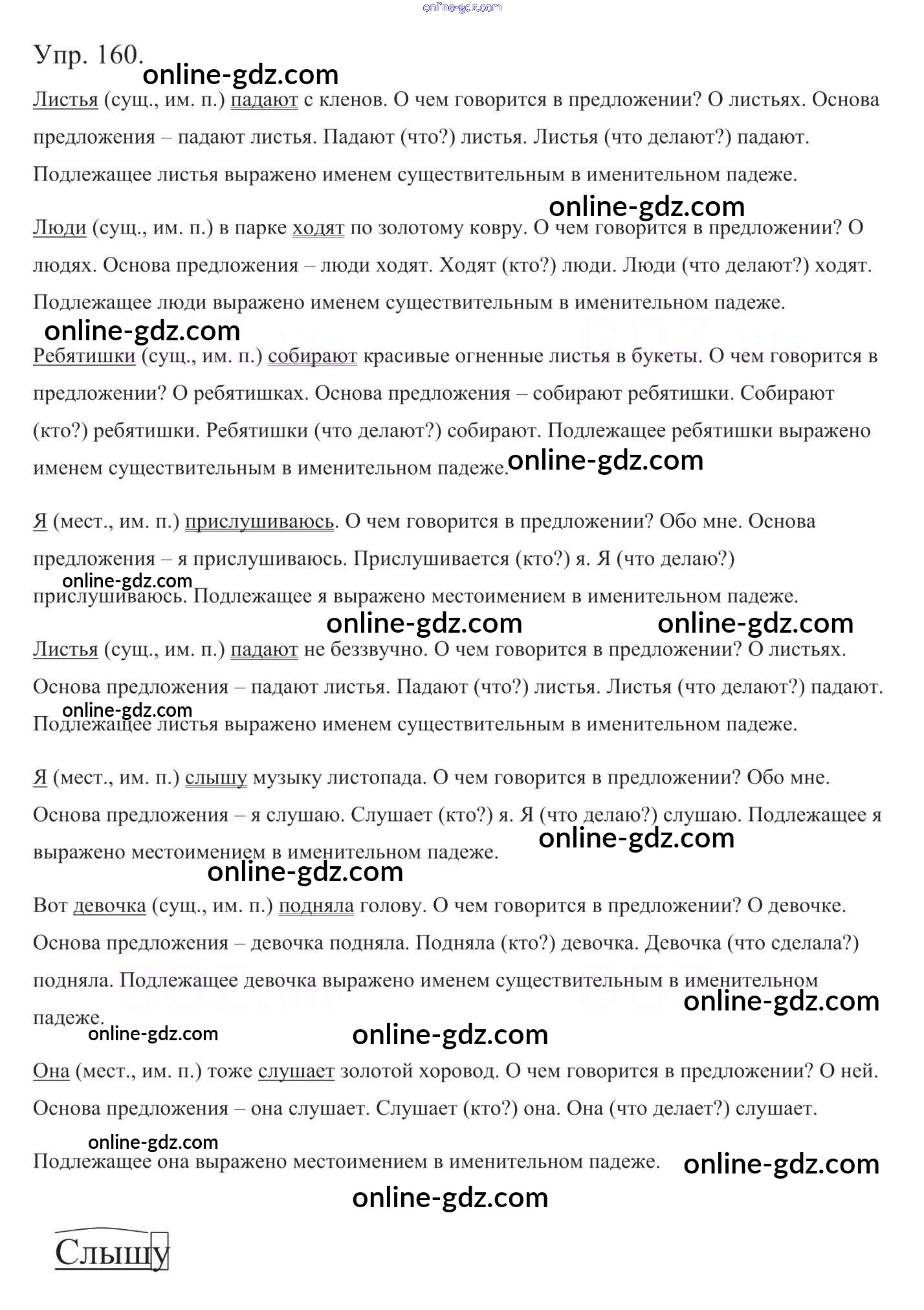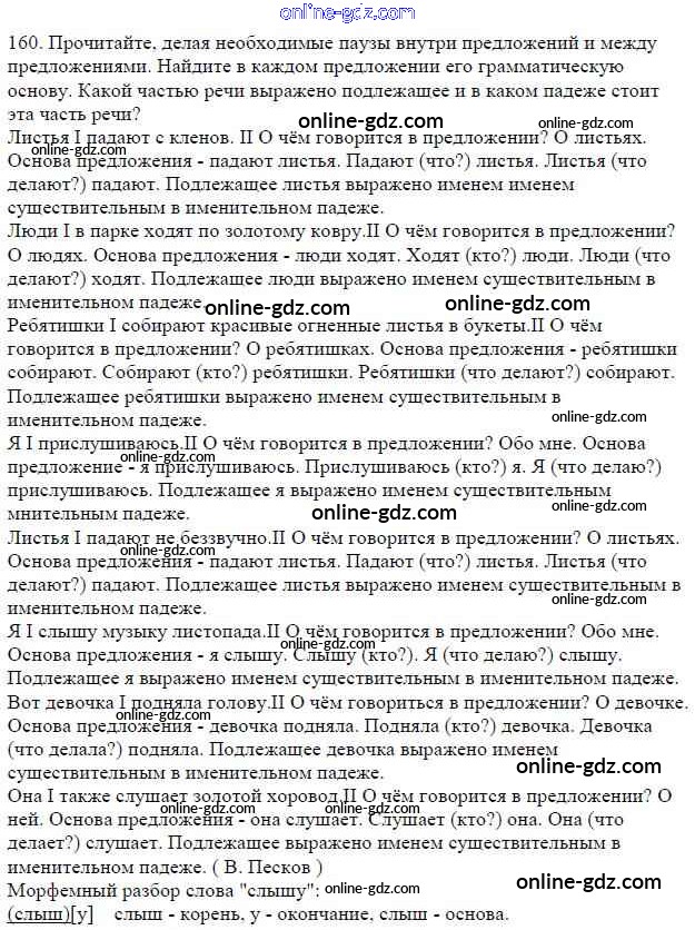 Готовые домашние задания по Русскому языку за 5 класс Учебник Баранов, Ладыженская 2016 - Часть 1. Упражнения 160