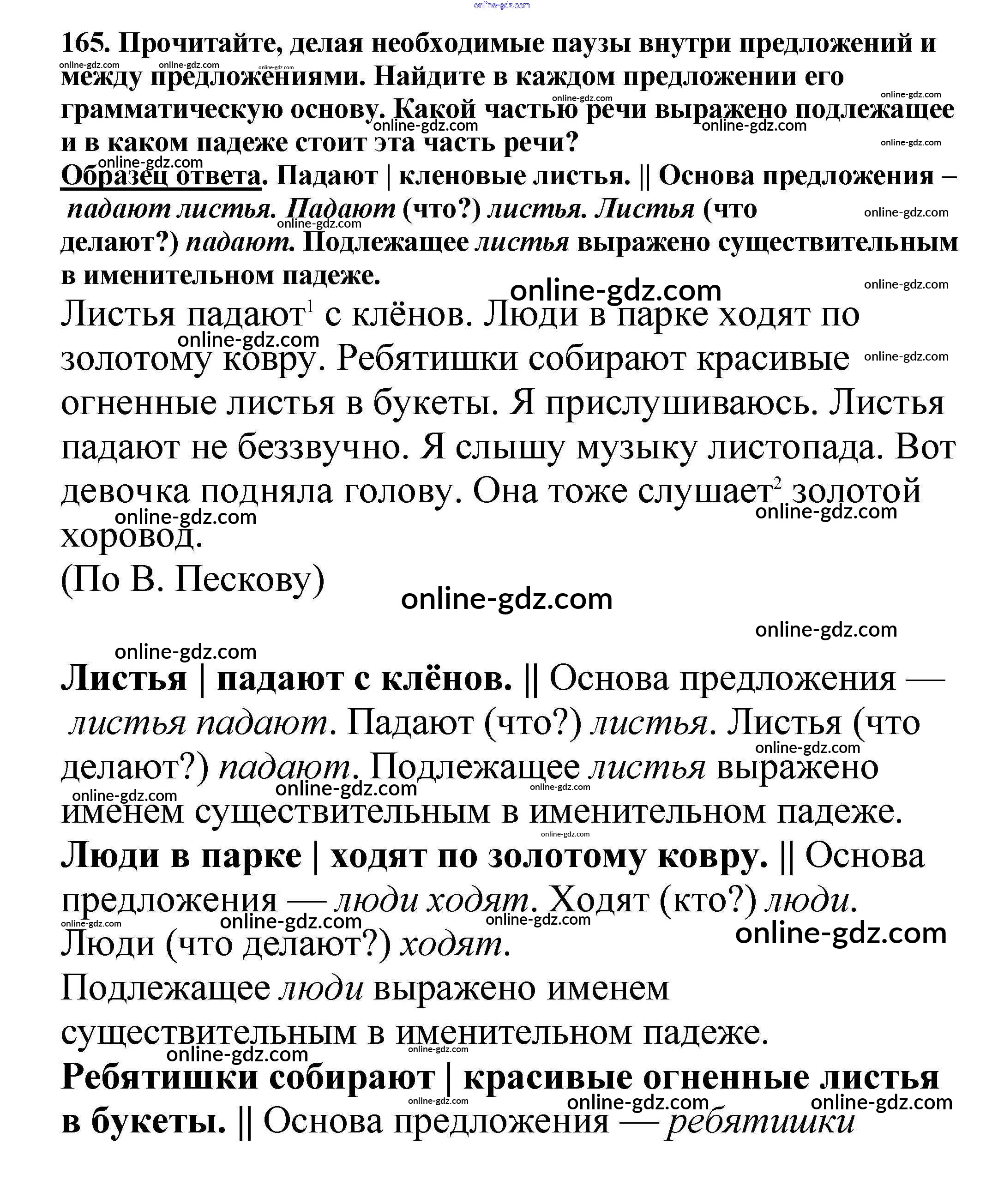 Готовые домашние задания по Русскому языку за 5 класс Учебник Баранов, Ладыженская 2016 - Часть 1. Упражнения 165