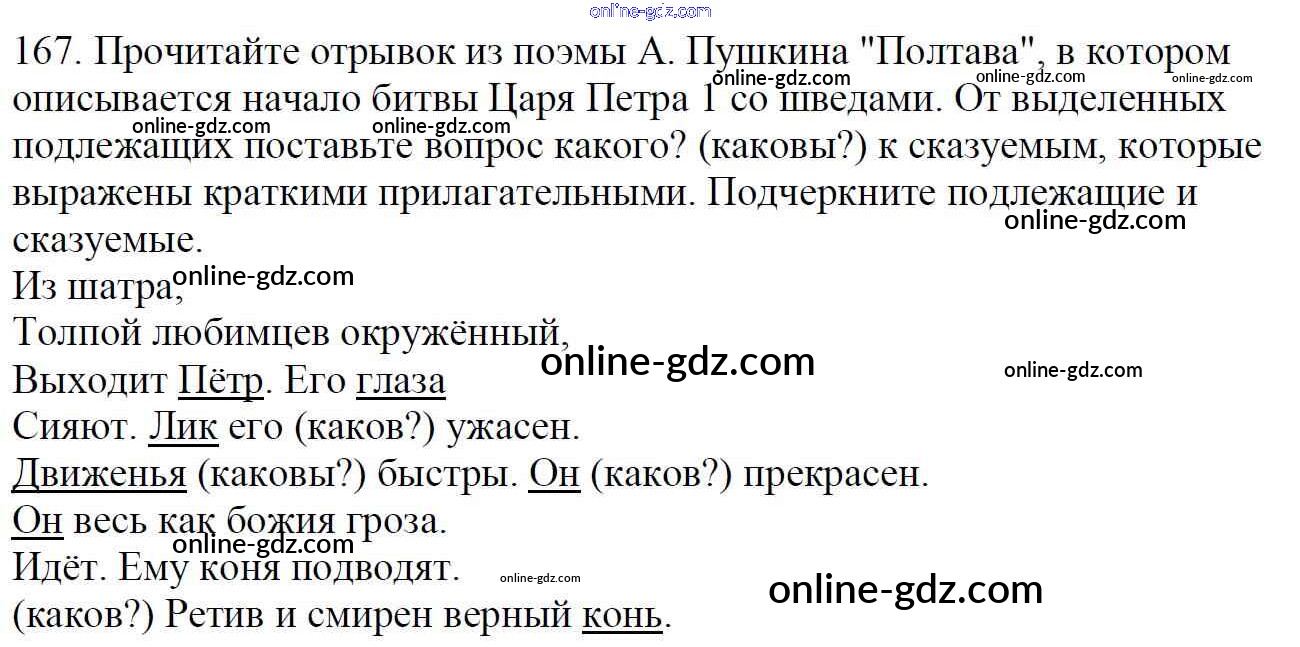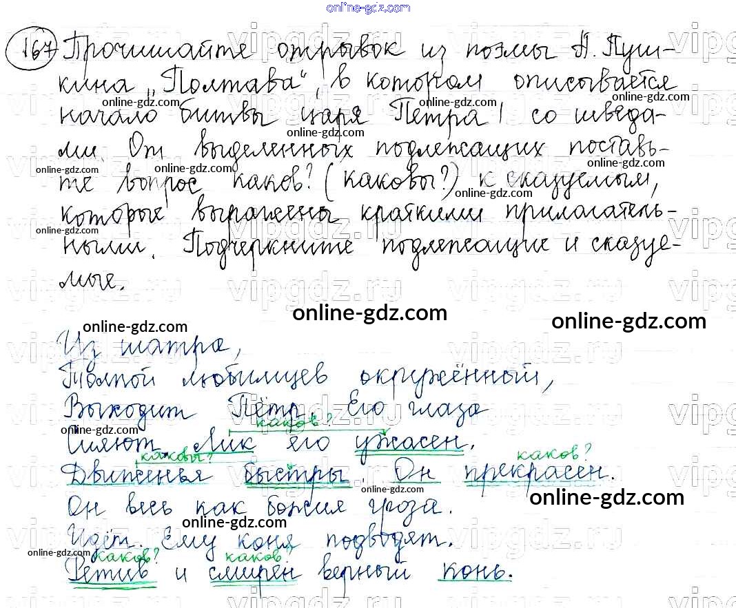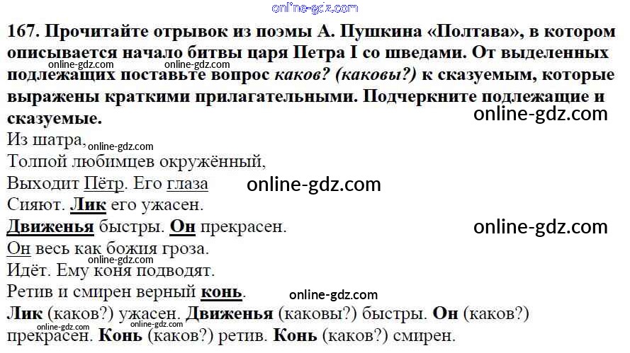 Готовые домашние задания по Русскому языку за 5 класс Учебник Баранов, Ладыженская 2016 - Часть 1. Упражнения 167