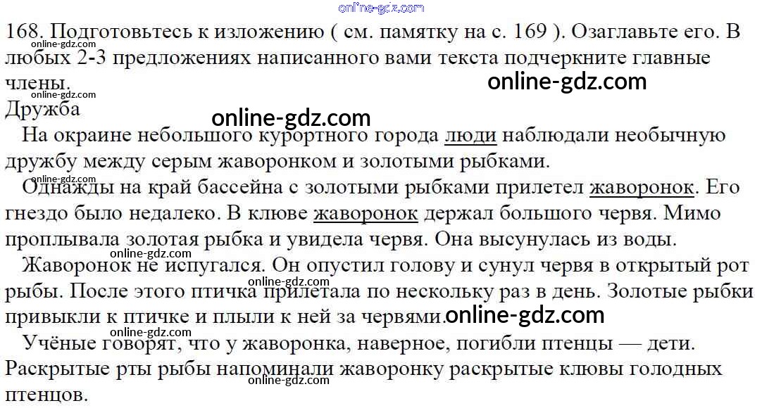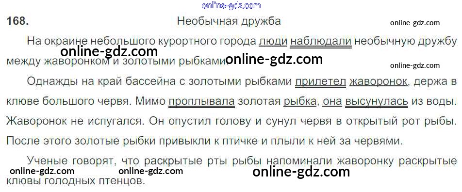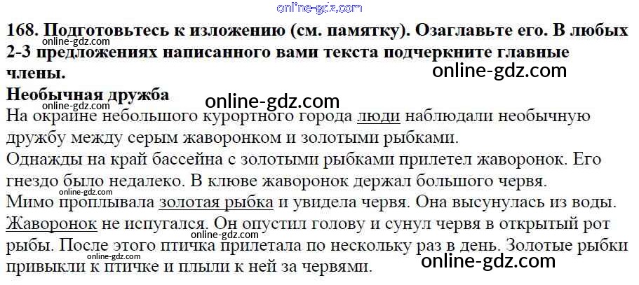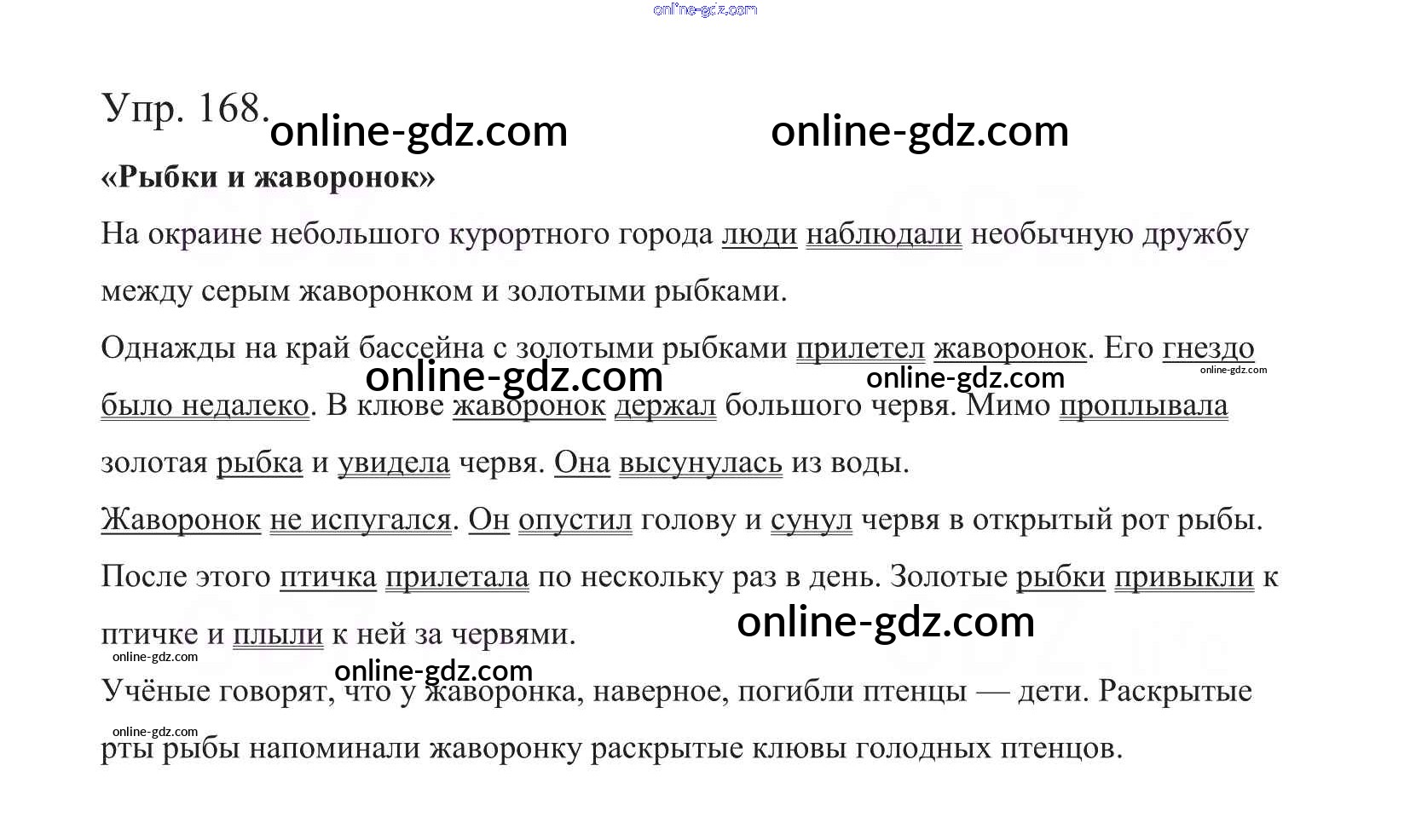 Готовые домашние задания по Русскому языку за 5 класс Учебник Баранов, Ладыженская 2016 - Часть 1. Упражнения 168