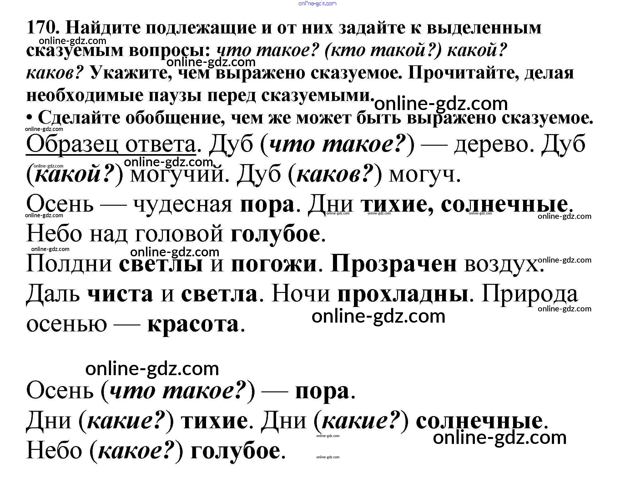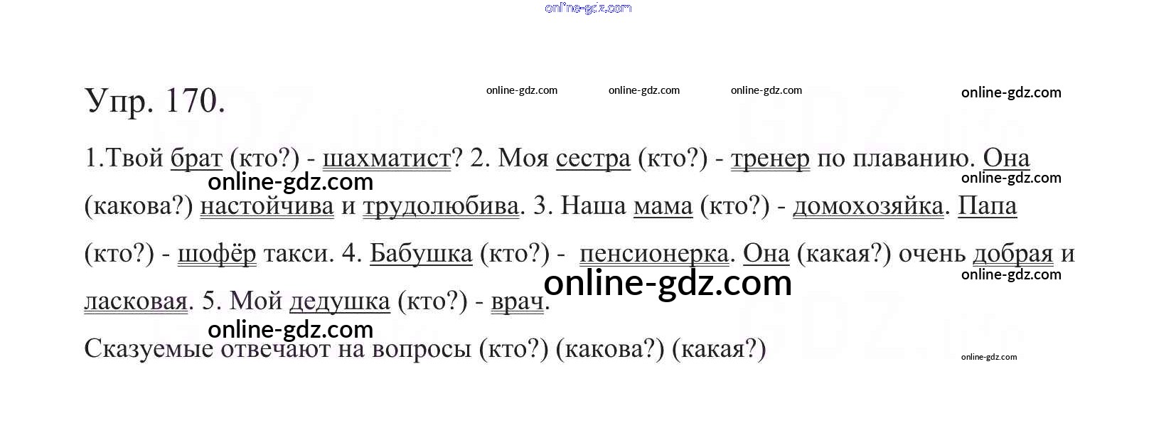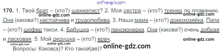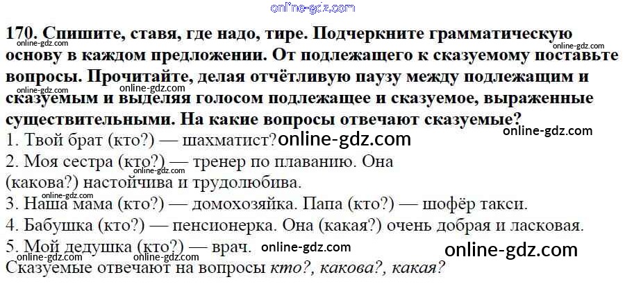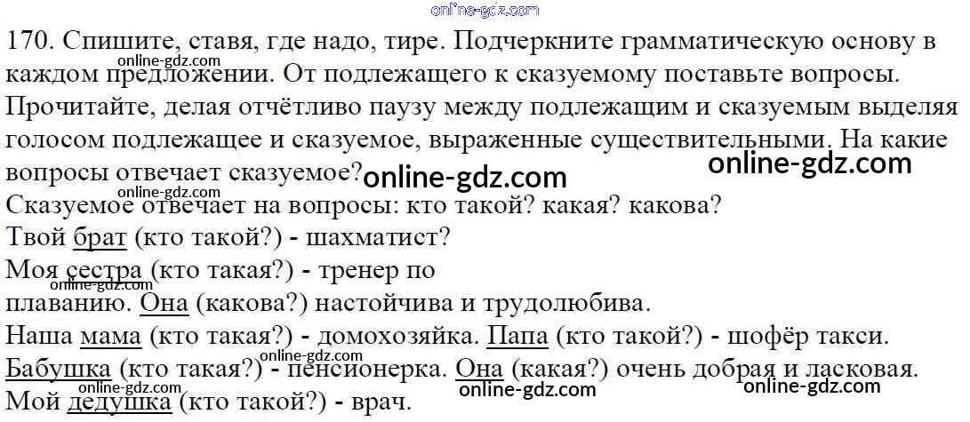 Готовые домашние задания по Русскому языку за 5 класс Учебник Баранов, Ладыженская 2016 - Часть 1. Упражнения 170