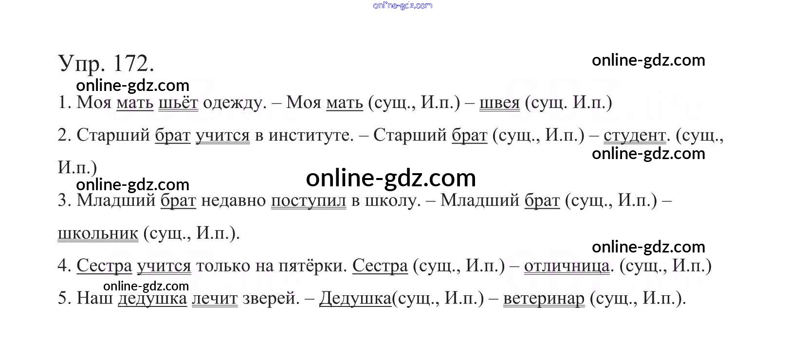 Готовые домашние задания по Русскому языку за 5 класс Учебник Баранов, Ладыженская 2016 - Часть 1. Упражнения 172