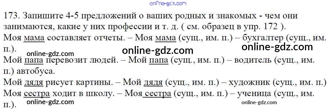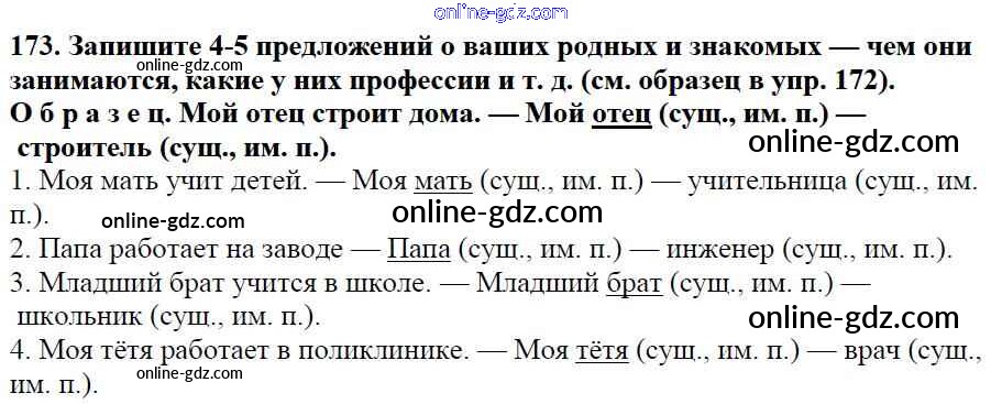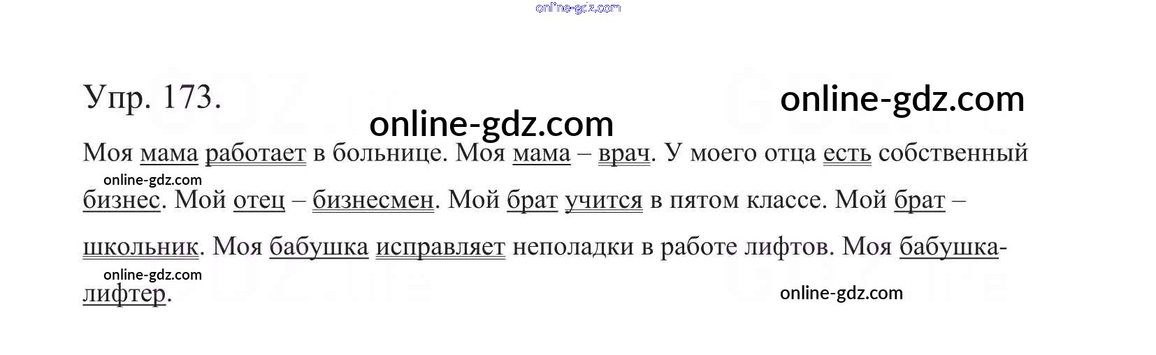 Готовые домашние задания по Русскому языку за 5 класс Учебник Баранов, Ладыженская 2016 - Часть 1. Упражнения 173