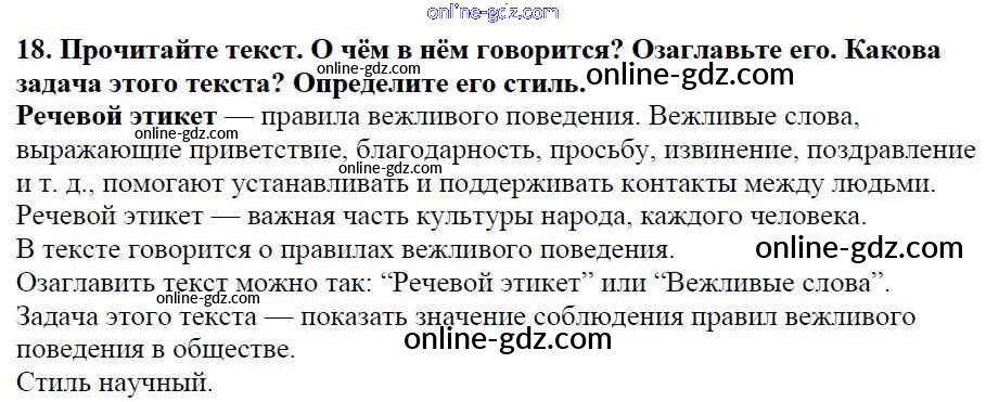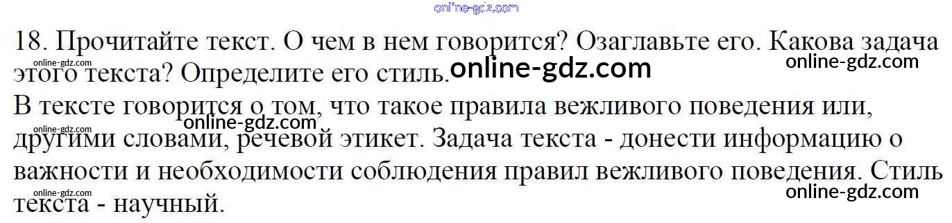 Готовые домашние задания по Русскому языку за 5 класс Учебник Баранов, Ладыженская 2016 - Часть 1. Упражнения 18