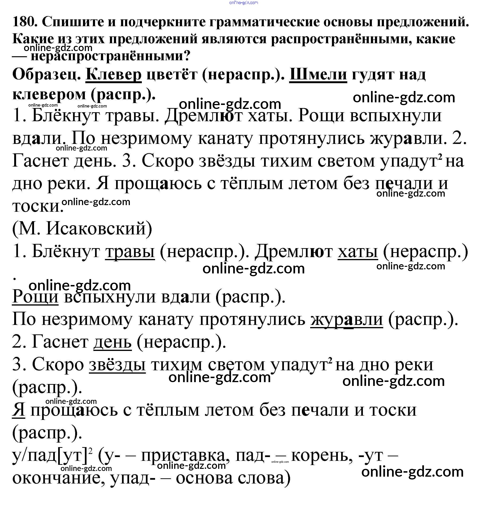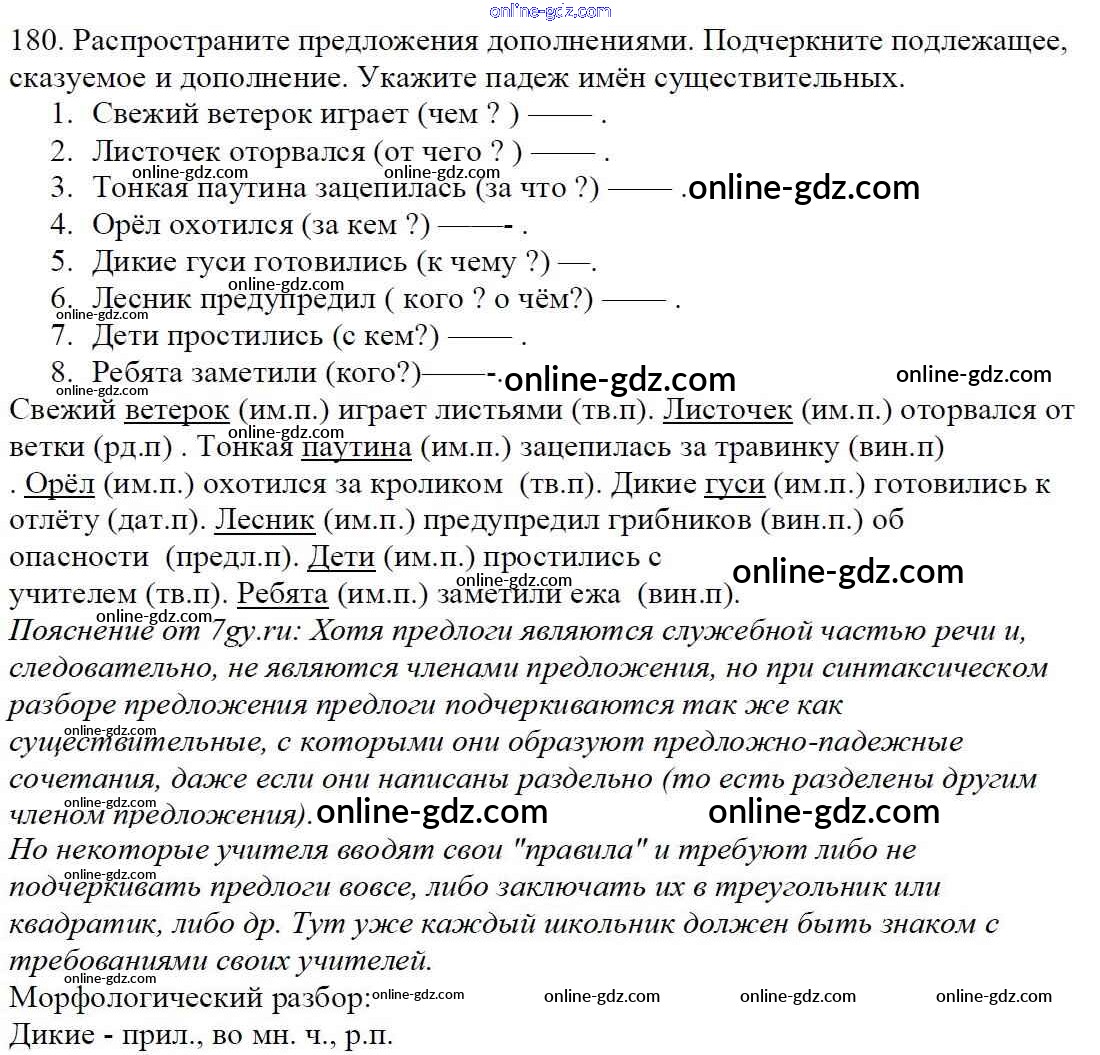 Готовые домашние задания по Русскому языку за 5 класс Учебник Баранов, Ладыженская 2016 - Часть 1. Упражнения 180