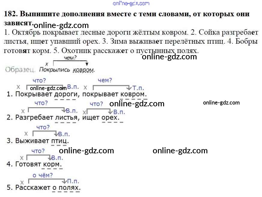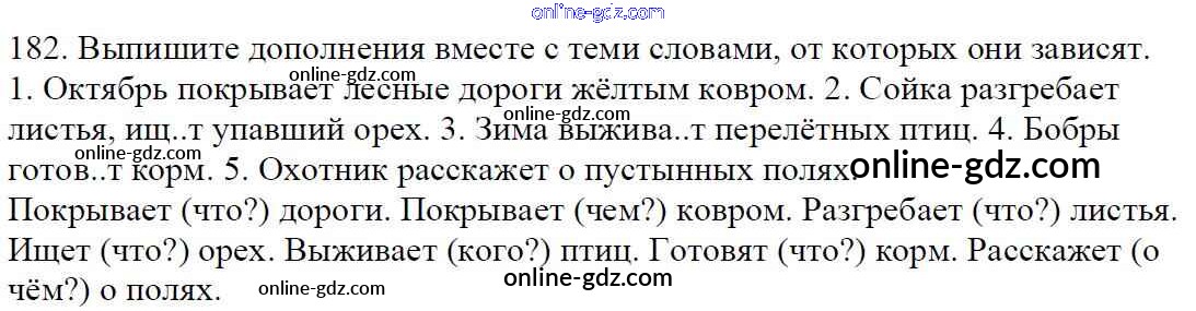 Готовые домашние задания по Русскому языку за 5 класс Учебник Баранов, Ладыженская 2016 - Часть 1. Упражнения 182