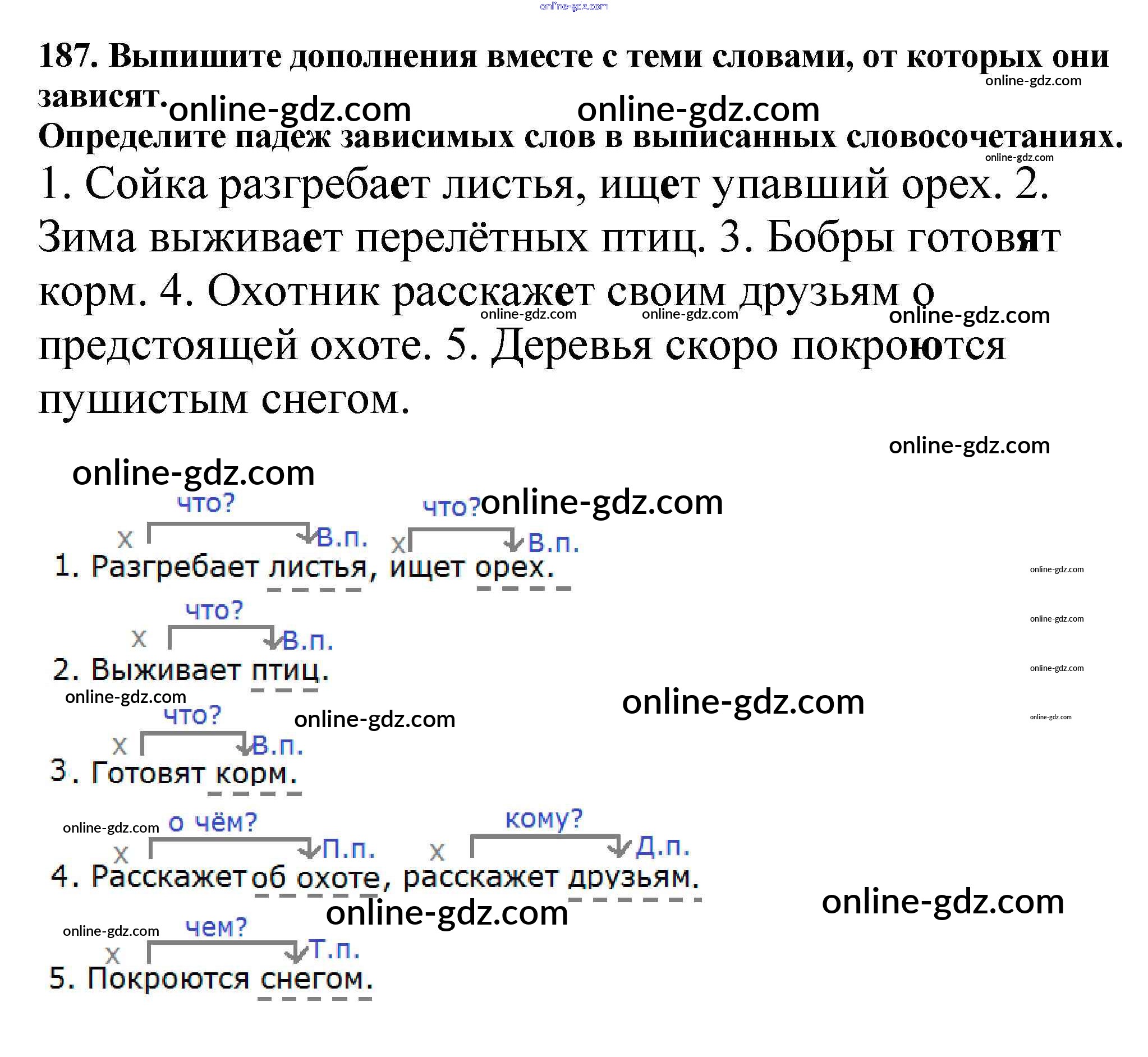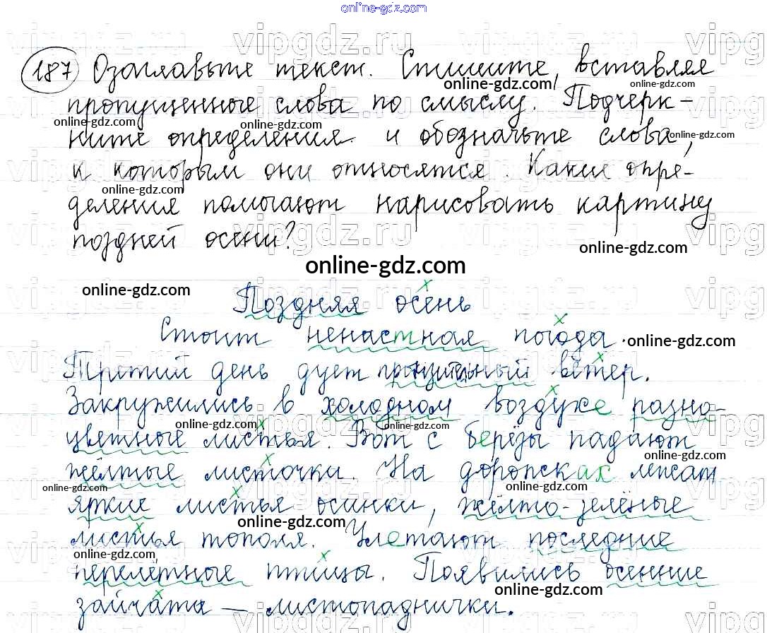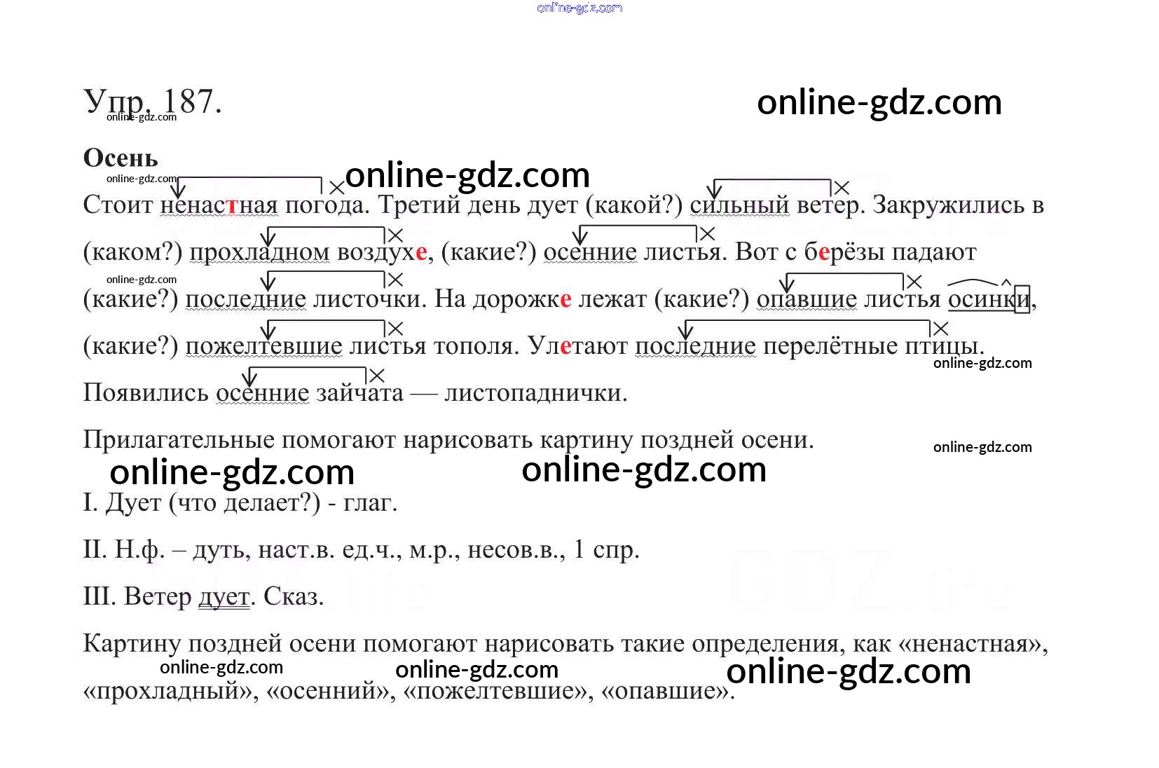 Готовые домашние задания по Русскому языку за 5 класс Учебник Баранов, Ладыженская 2016 - Часть 1. Упражнения 187