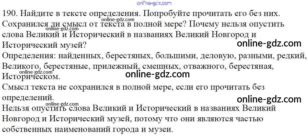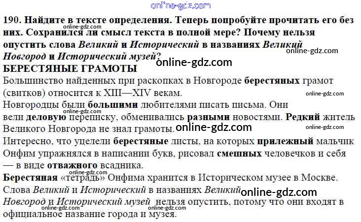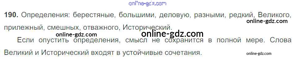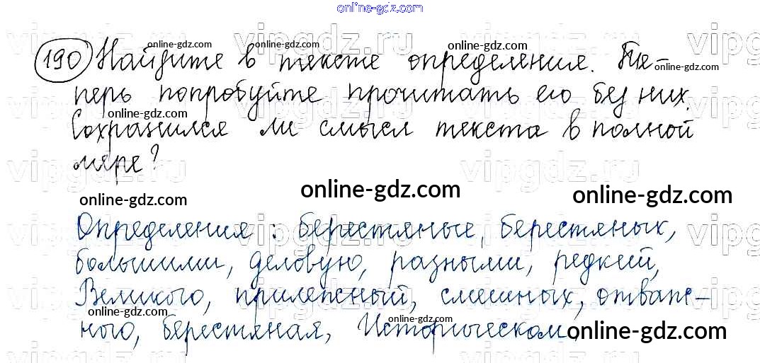 Готовые домашние задания по Русскому языку за 5 класс Учебник Баранов, Ладыженская 2016 - Часть 1. Упражнения 190