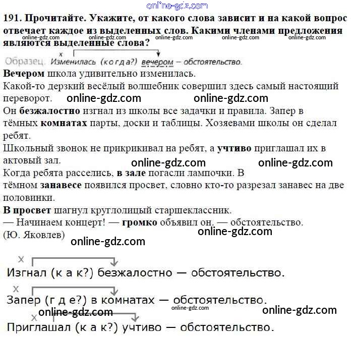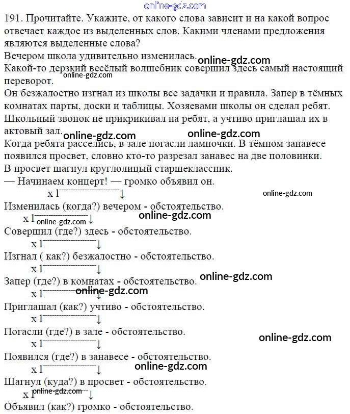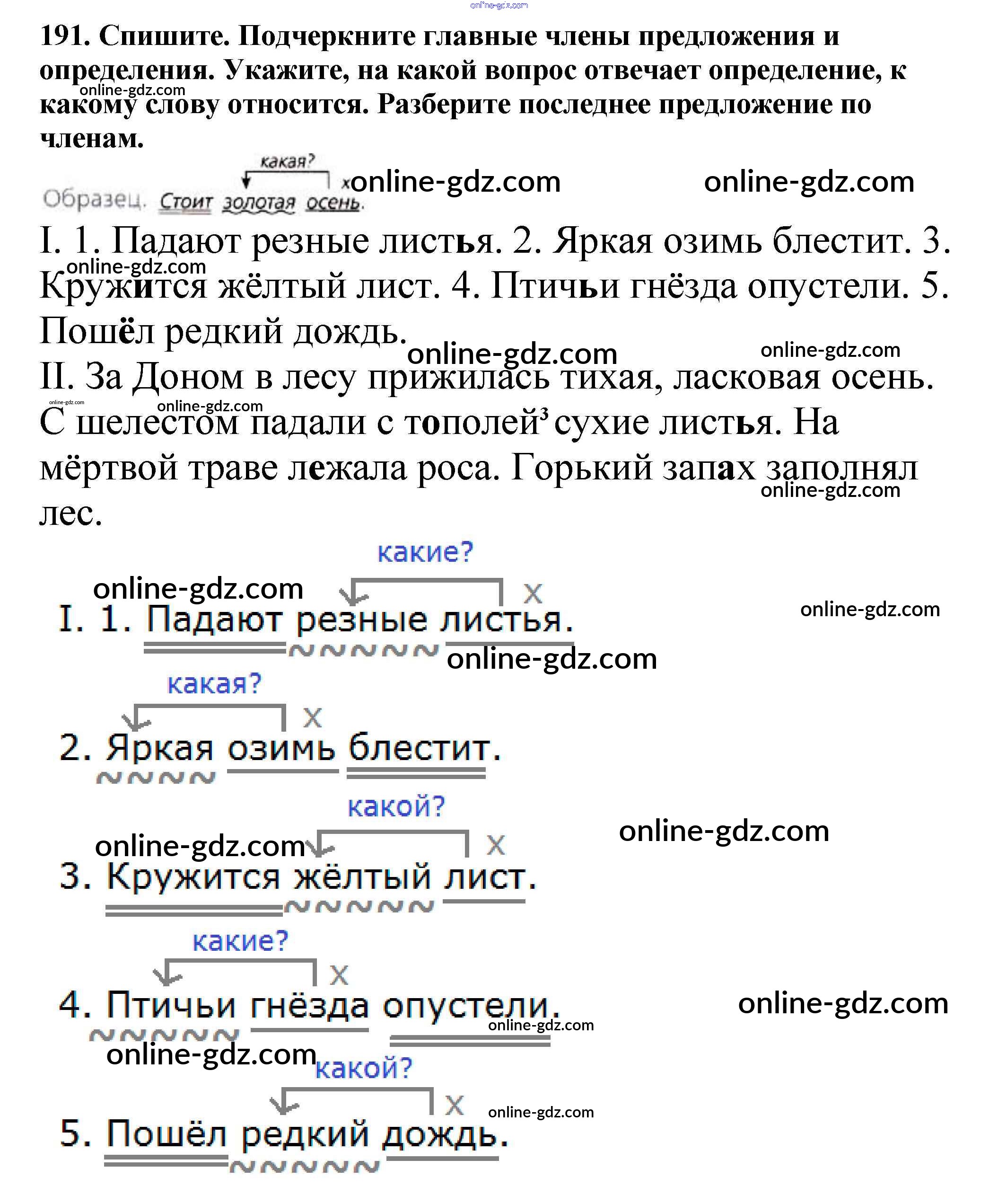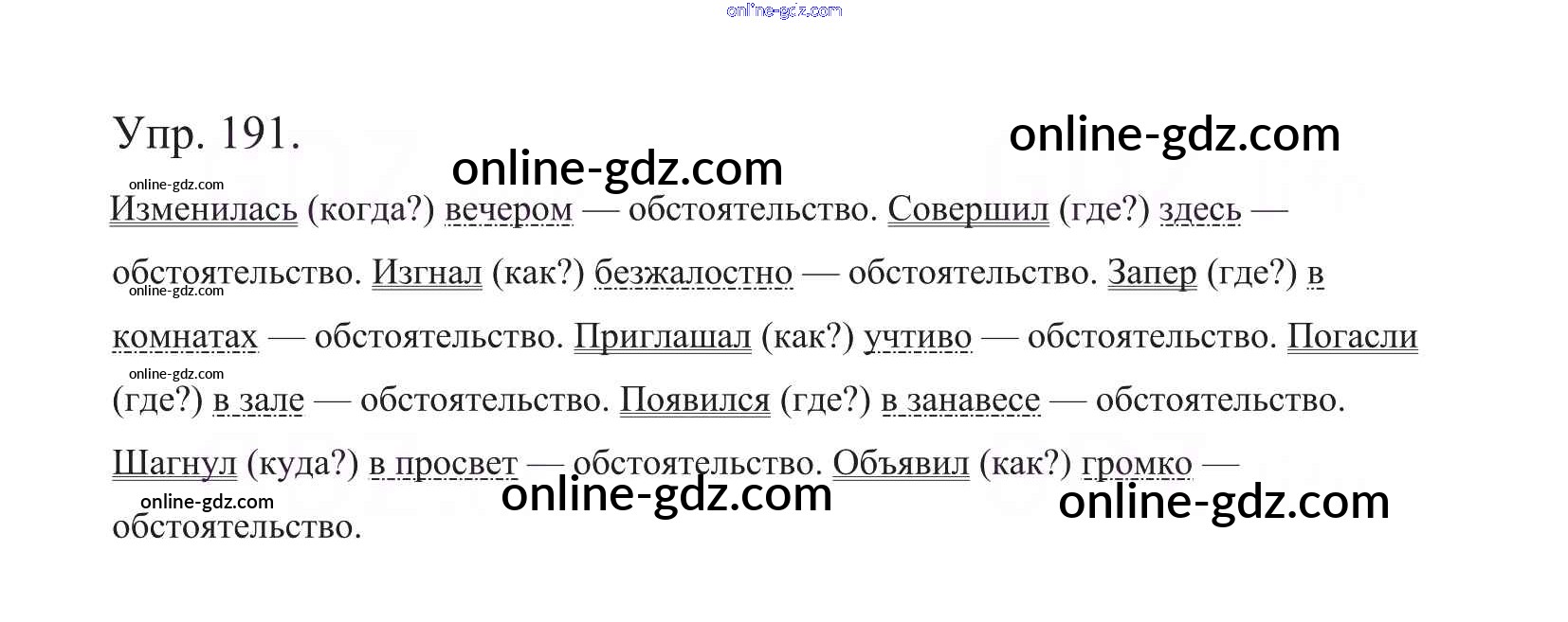 Готовые домашние задания по Русскому языку за 5 класс Учебник Баранов, Ладыженская 2016 - Часть 1. Упражнения 191