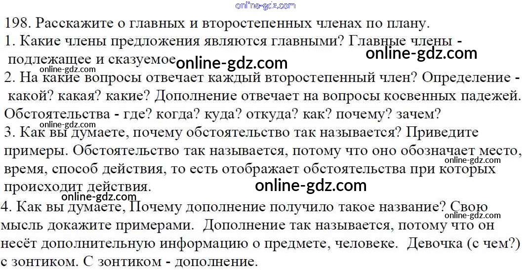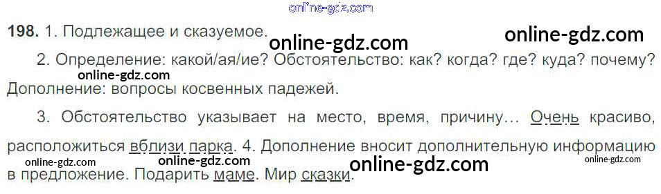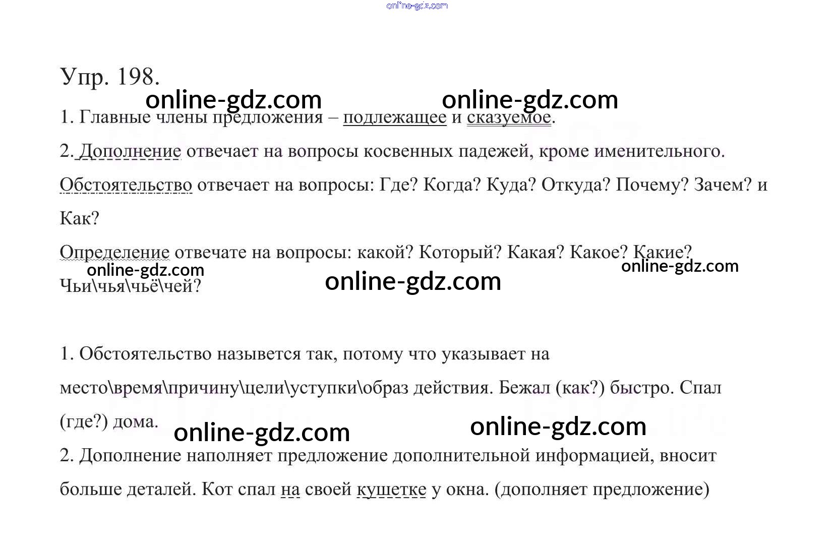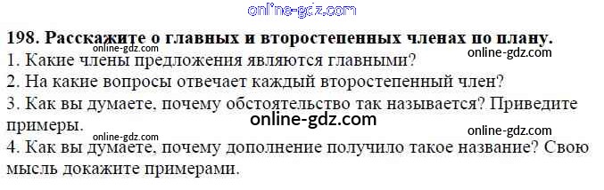 Готовые домашние задания по Русскому языку за 5 класс Учебник Баранов, Ладыженская 2016 - Часть 1. Упражнения 198