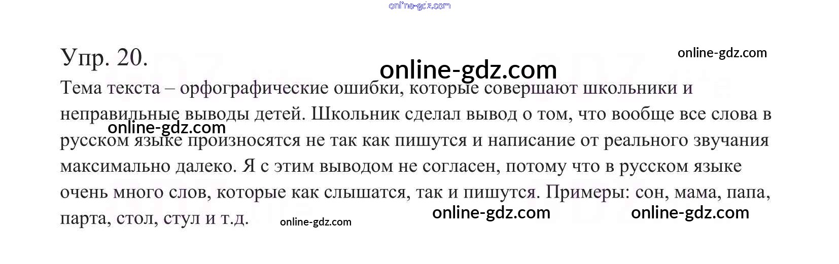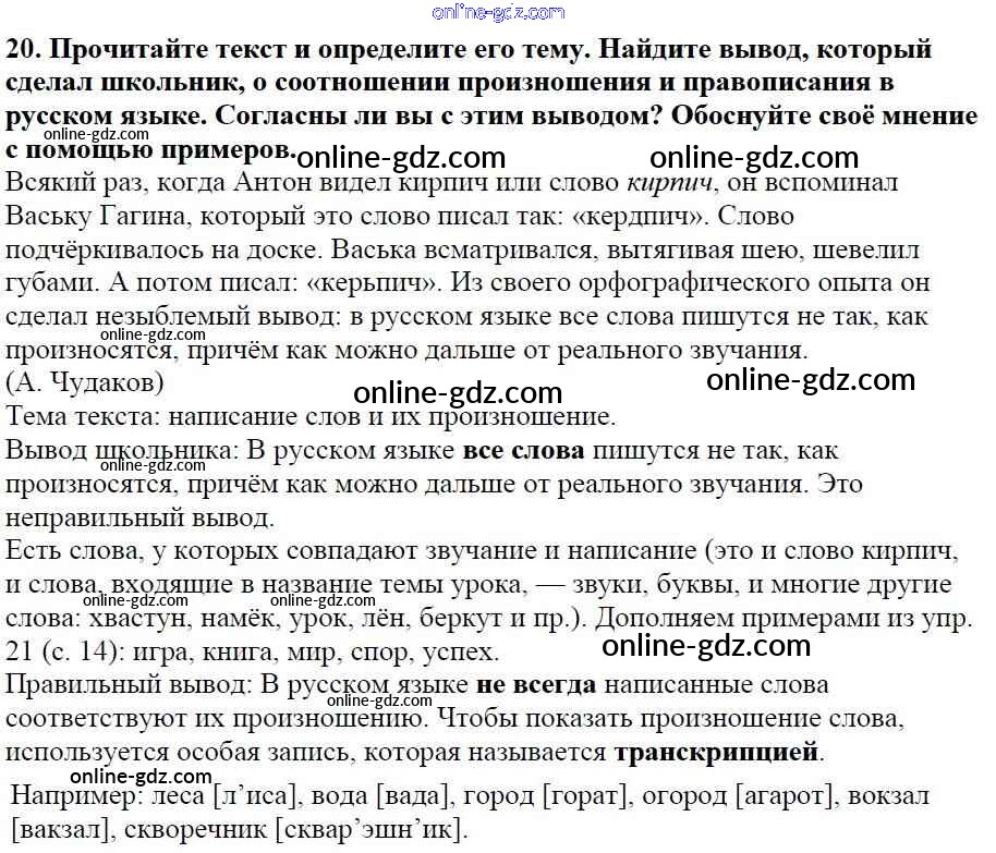Готовые домашние задания по Русскому языку за 5 класс Учебник Баранов, Ладыженская 2016 - Часть 1. Упражнения 20