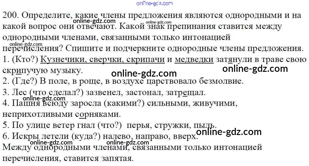 Готовые домашние задания по Русскому языку за 5 класс Учебник Баранов, Ладыженская 2016 - Часть 1. Упражнения 200