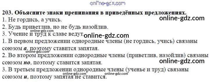 Готовые домашние задания по Русскому языку за 5 класс Учебник Баранов, Ладыженская 2016 - Часть 1. Упражнения 203