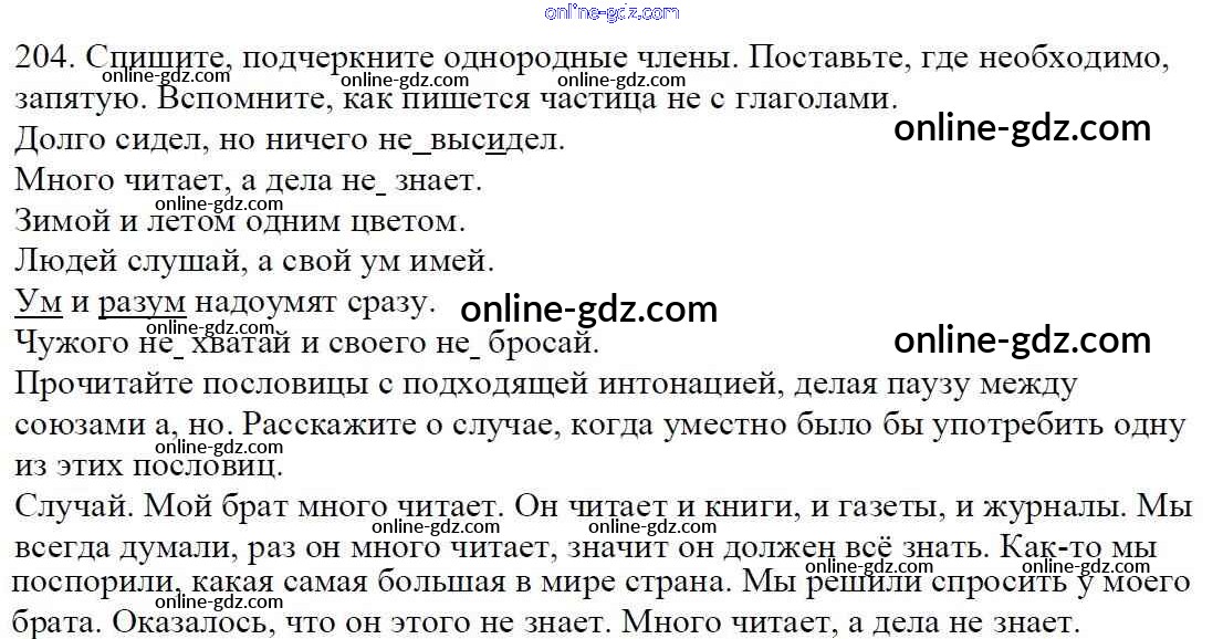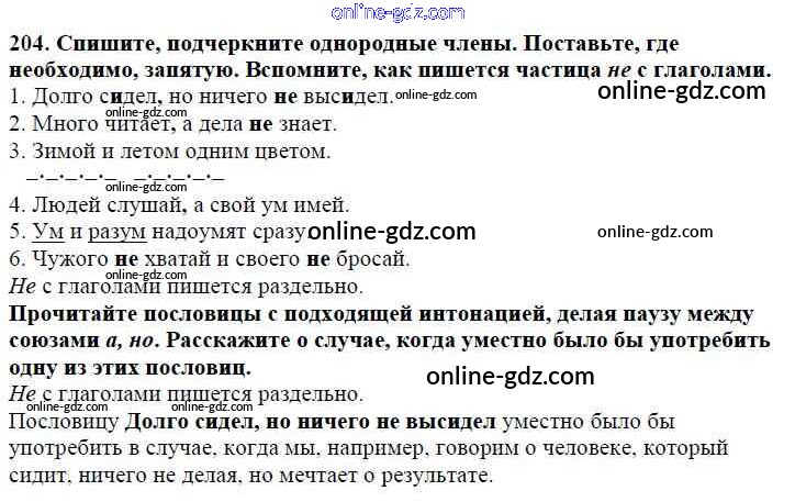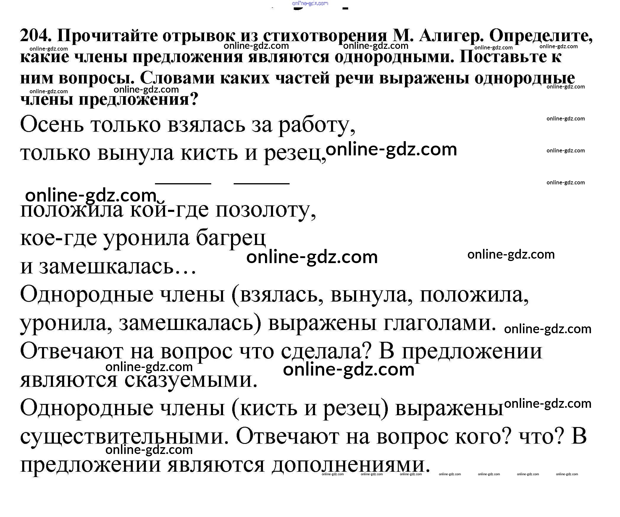 Готовые домашние задания по Русскому языку за 5 класс Учебник Баранов, Ладыженская 2016 - Часть 1. Упражнения 204