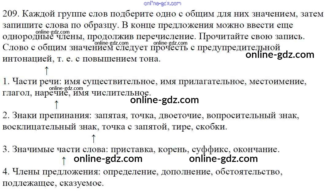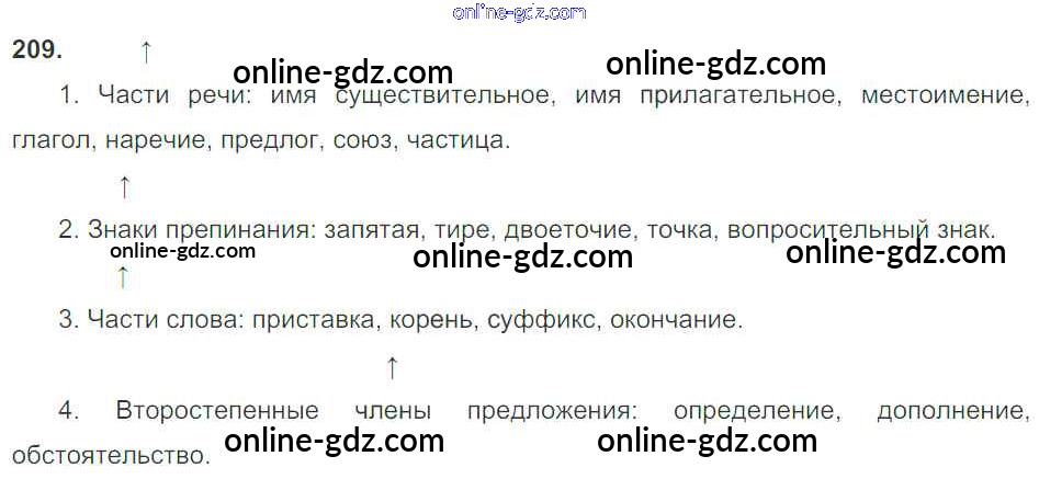 Готовые домашние задания по Русскому языку за 5 класс Учебник Баранов, Ладыженская 2016 - Часть 1. Упражнения 209
