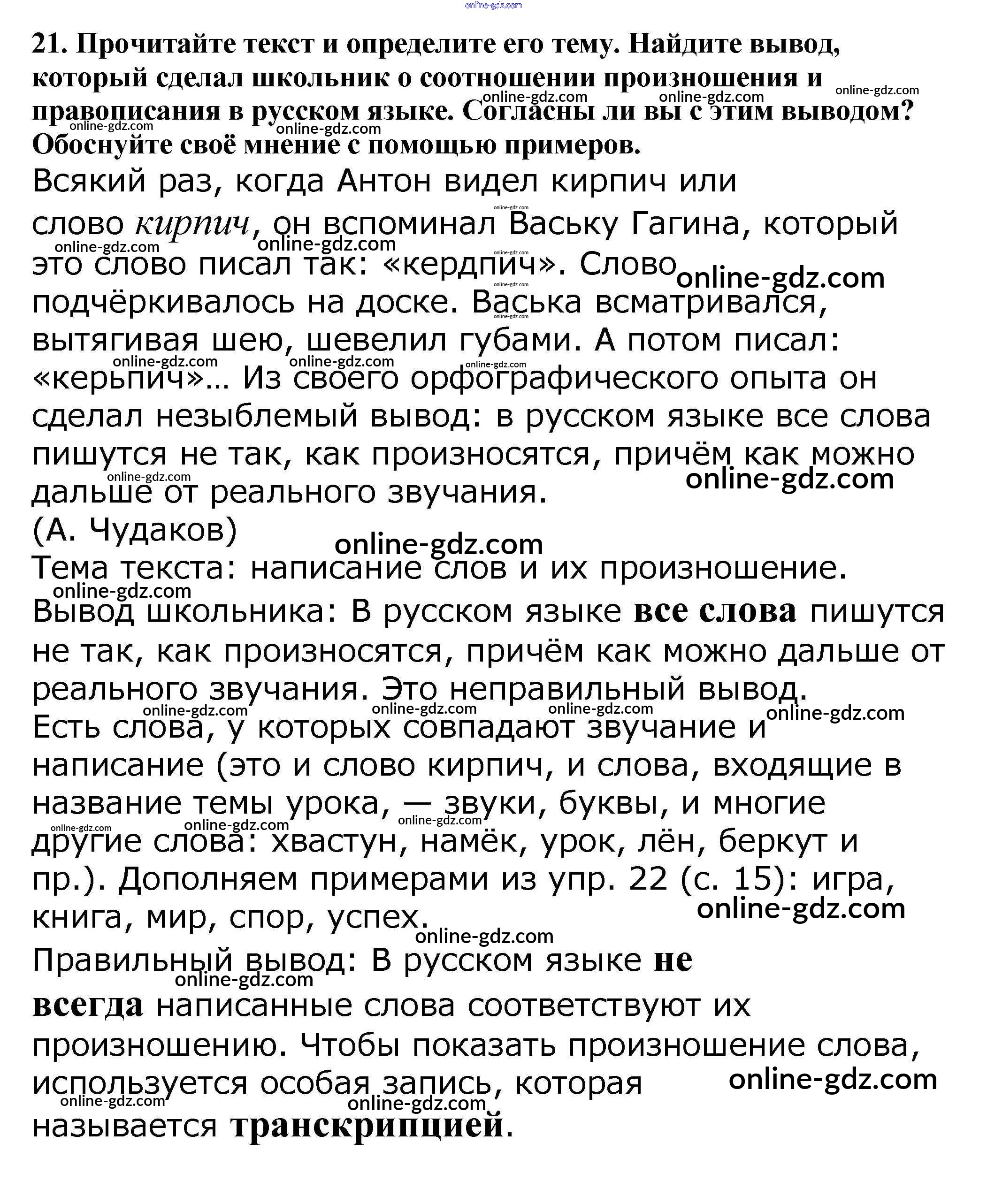 Готовые домашние задания по Русскому языку за 5 класс Учебник Баранов, Ладыженская 2016 - Часть 1. Упражнения 21