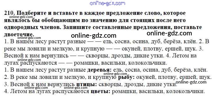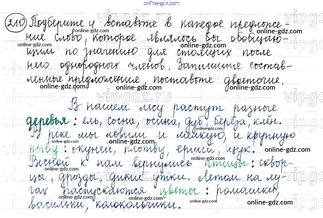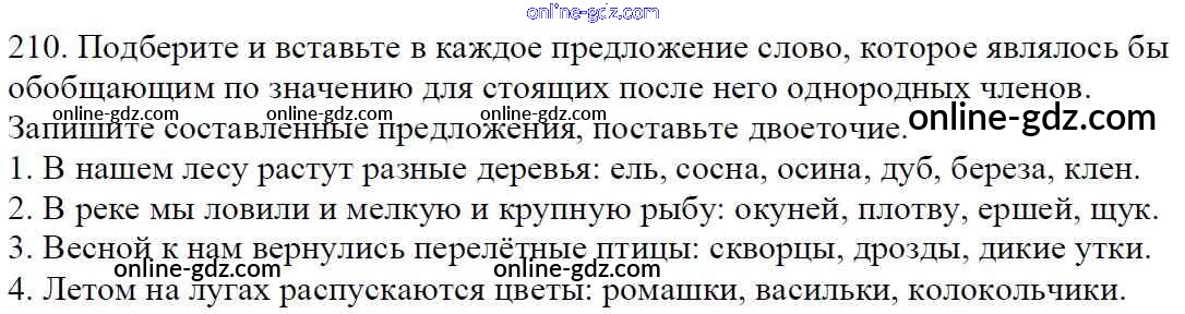 Готовые домашние задания по Русскому языку за 5 класс Учебник Баранов, Ладыженская 2016 - Часть 1. Упражнения 210