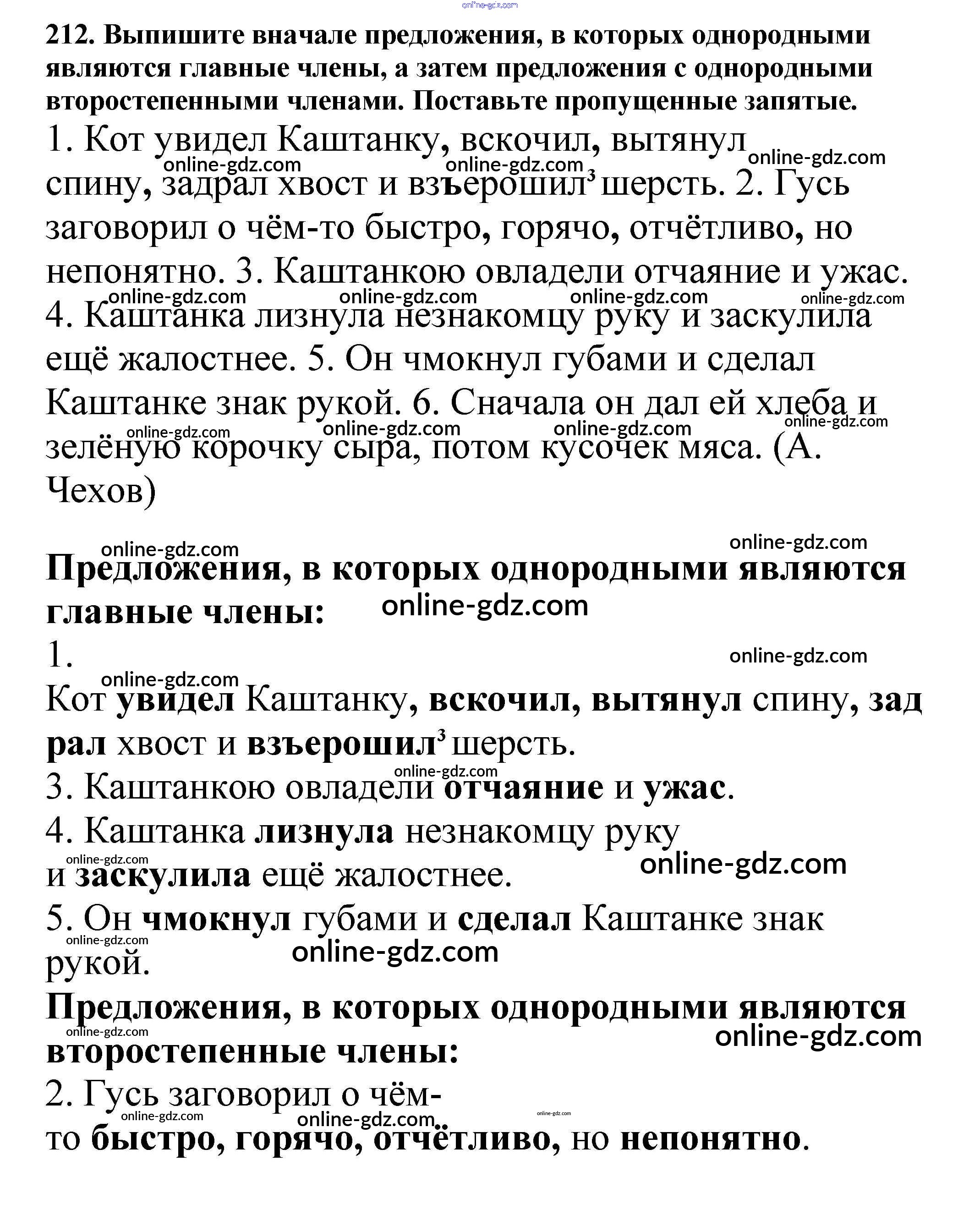 Готовые домашние задания по Русскому языку за 5 класс Учебник Баранов, Ладыженская 2016 - Часть 1. Упражнения 212