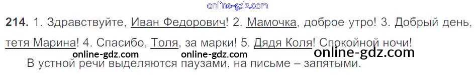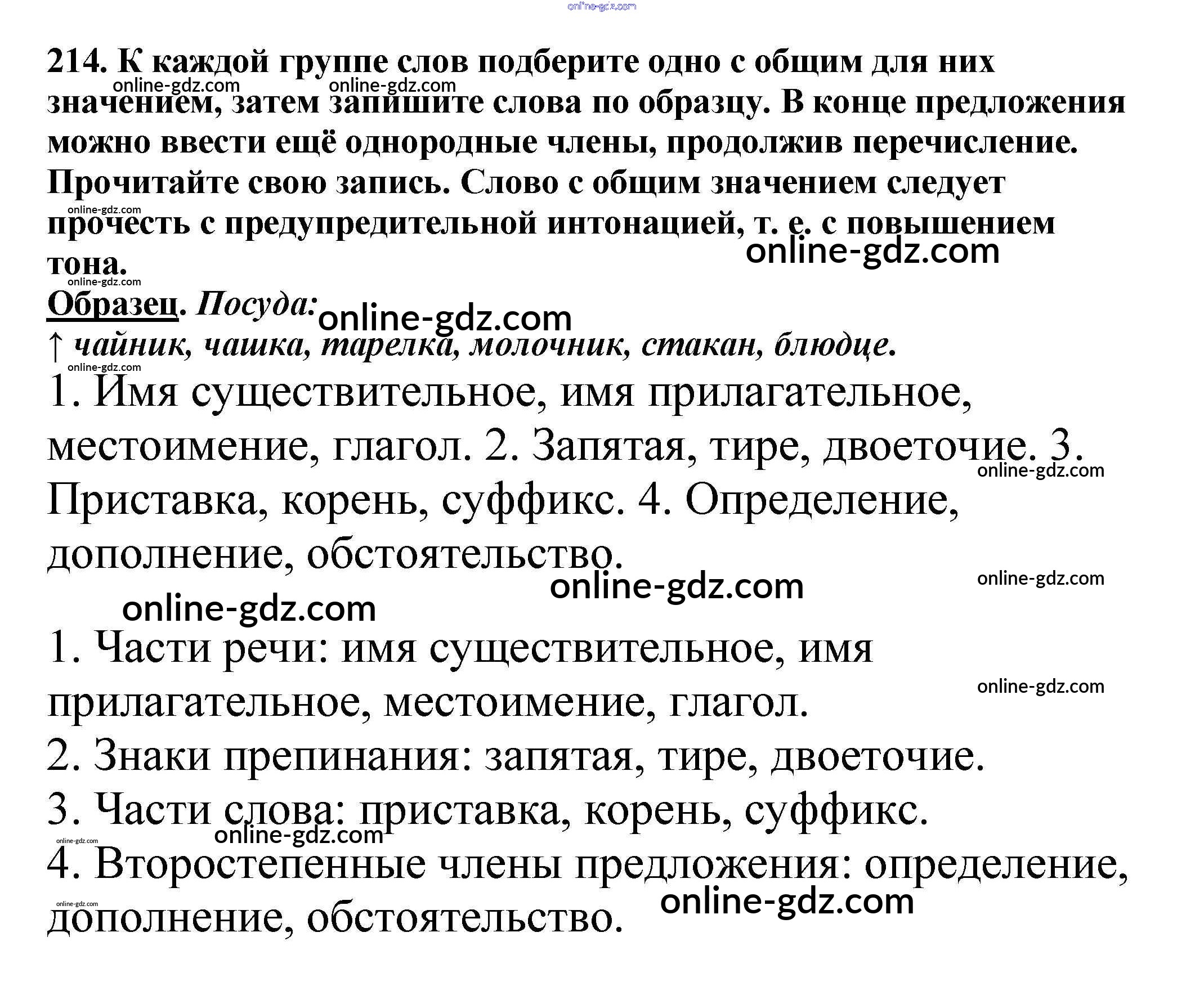 Готовые домашние задания по Русскому языку за 5 класс Учебник Баранов, Ладыженская 2016 - Часть 1. Упражнения 214