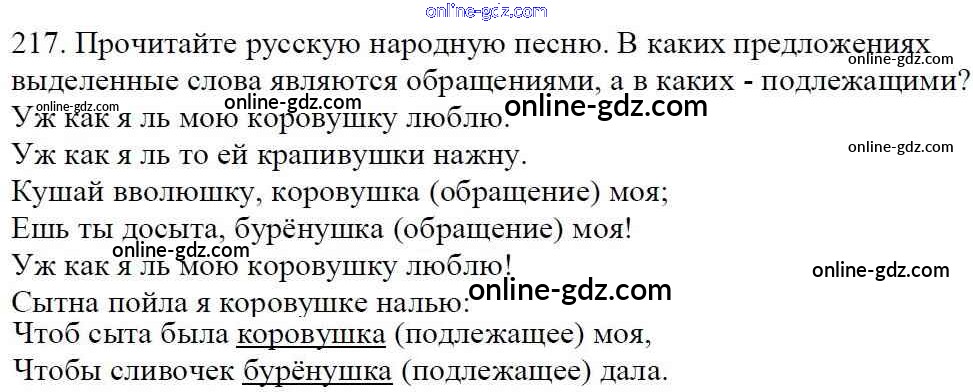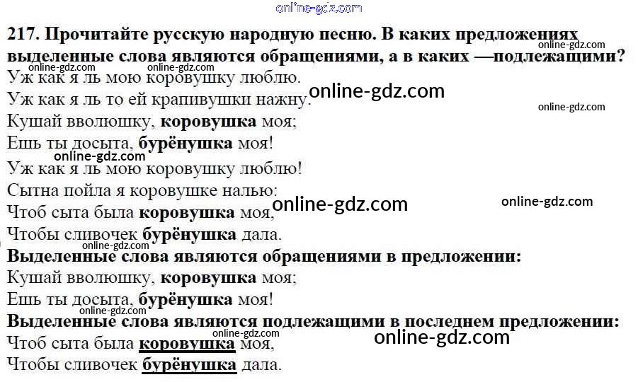 Готовые домашние задания по Русскому языку за 5 класс Учебник Баранов, Ладыженская 2016 - Часть 1. Упражнения 217