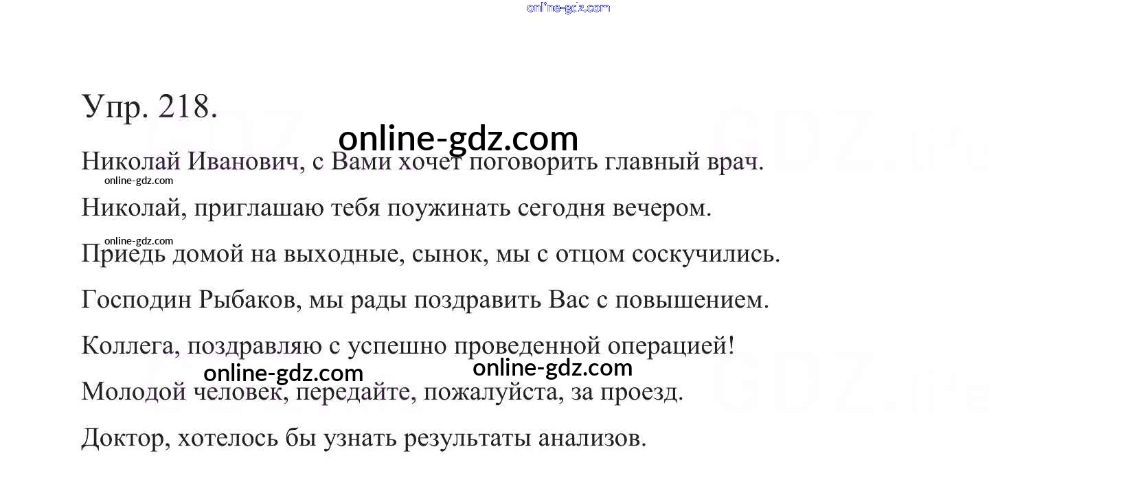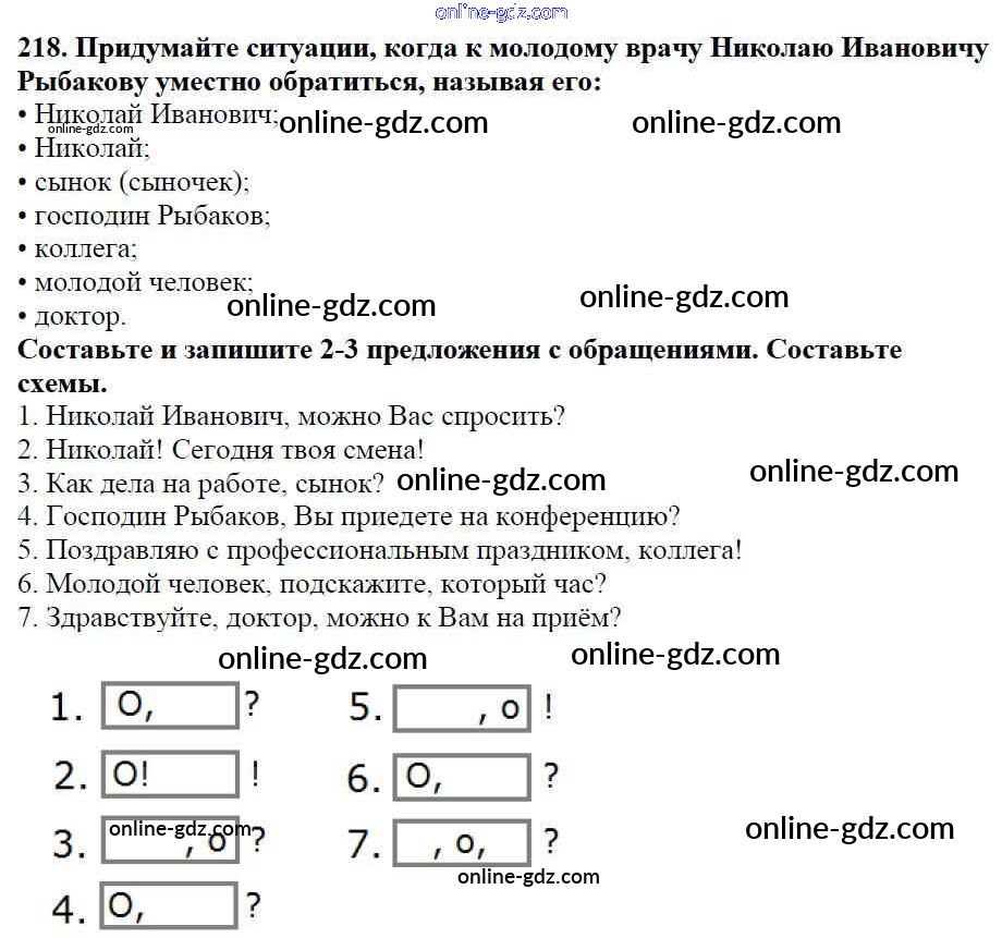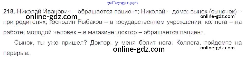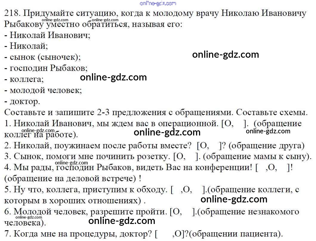 Готовые домашние задания по Русскому языку за 5 класс Учебник Баранов, Ладыженская 2016 - Часть 1. Упражнения 218