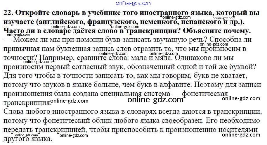 Готовые домашние задания по Русскому языку за 5 класс Учебник Баранов, Ладыженская 2016 - Часть 1. Упражнения 22